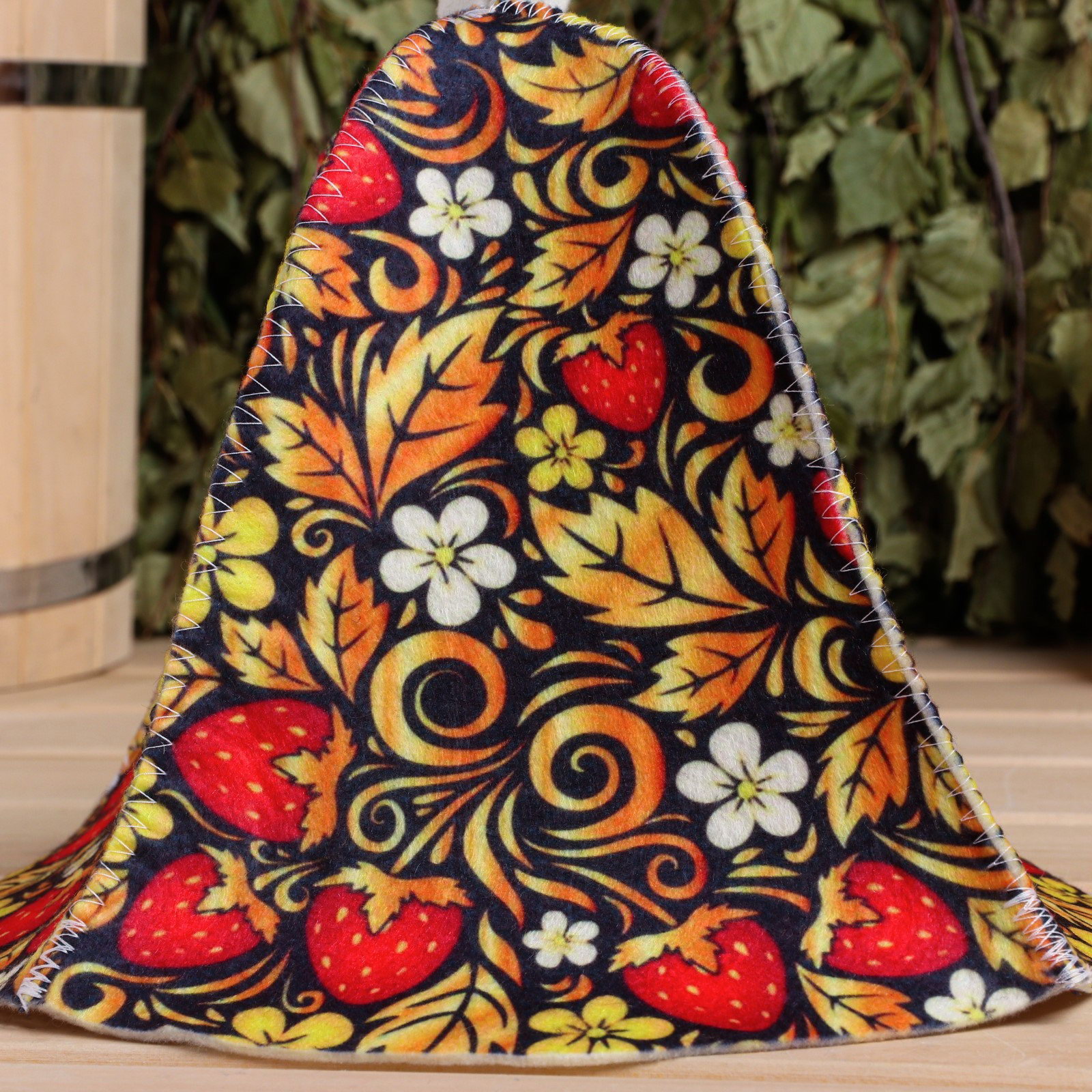 Шапка для бани и сауны "Хохлома", полиэфир 70%, шерсть 30%, Добропаровъ, Россия