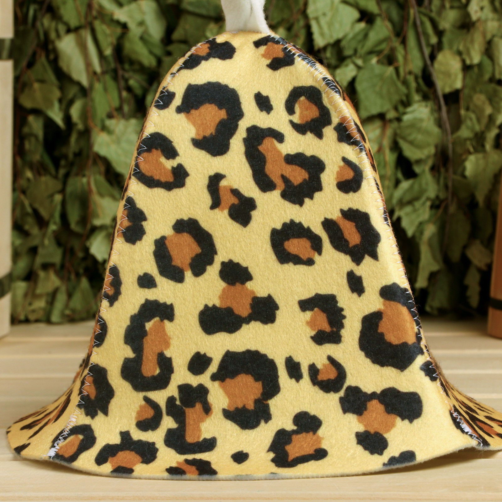 Шапка для бани и сауны, с принтом "Леопардовая", полиэфир 70%, шерсть 30%, Добропаровъ, Россия