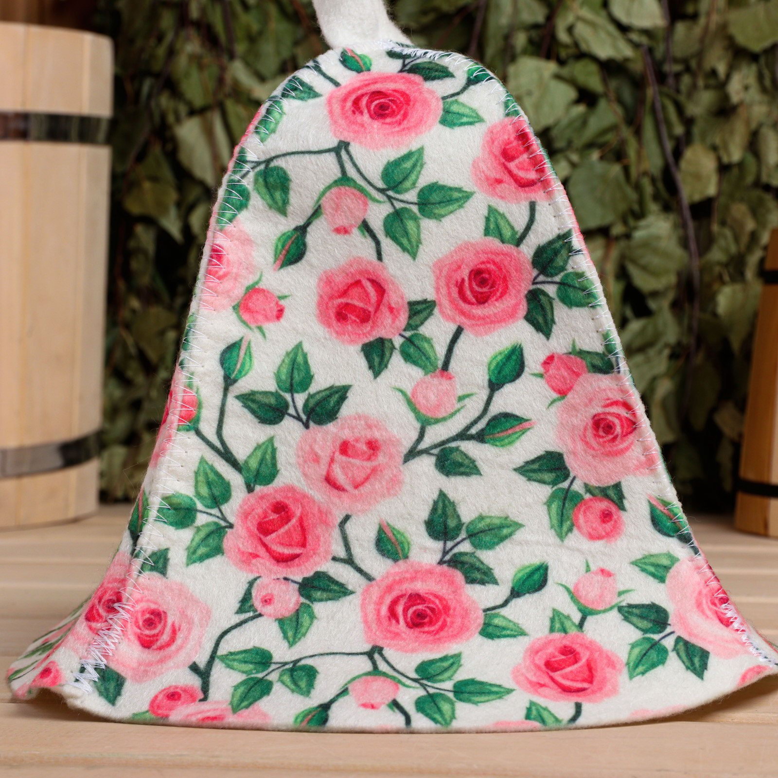 Шапка для бани и сауны "Розочки", полиэфир 70%, шерсть 30%, Добропаровъ, Россия