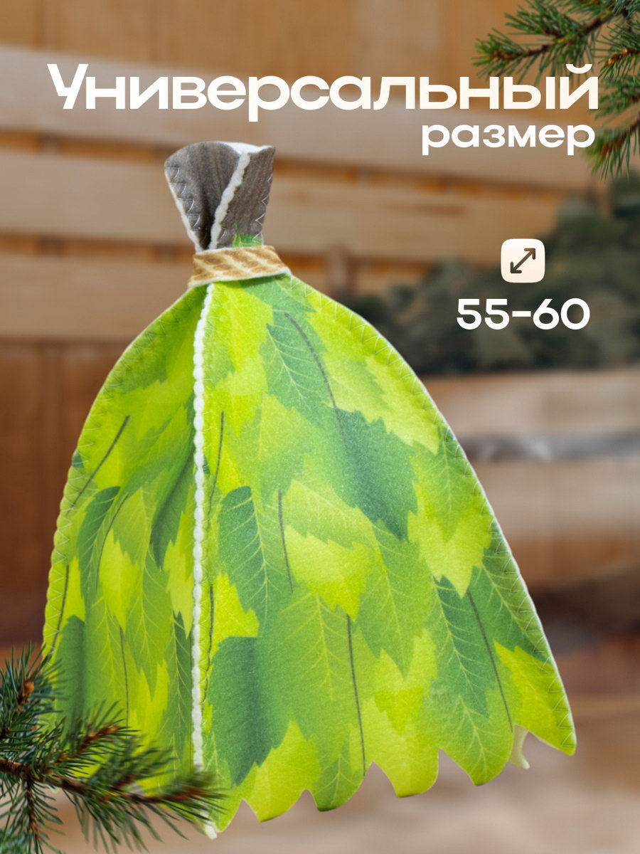 Шапка для бани и сауны с принтом "Банный веник", войлок, зелёная, Россия