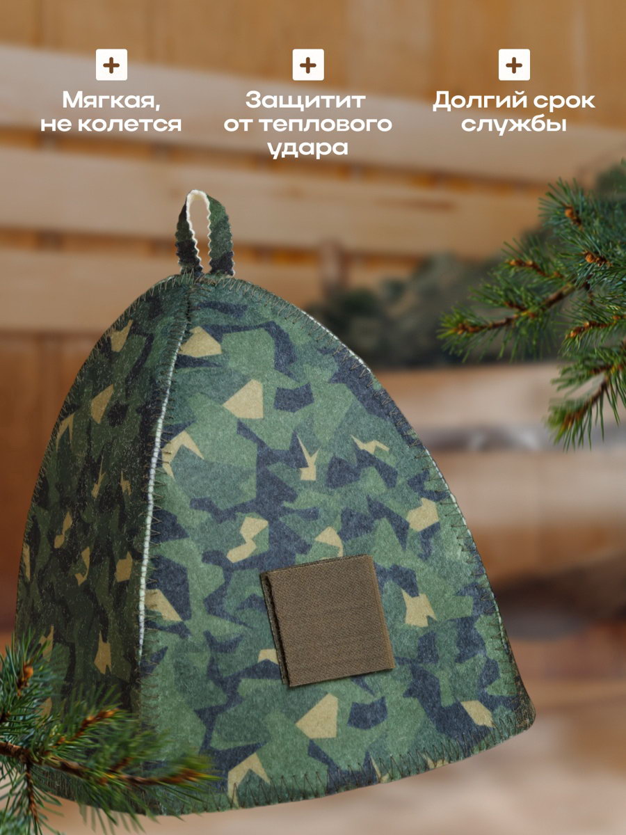 Шапка для бани "Классическая" с принтом "Милитари", с липучкой под шеврон, Добропаровъ, Россия