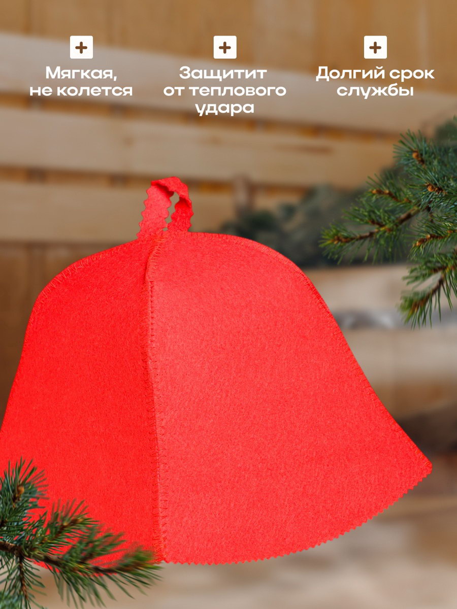 Шапка для бани и сауны "Классическая", полиэфир, красная, Добропаровъ, Россия