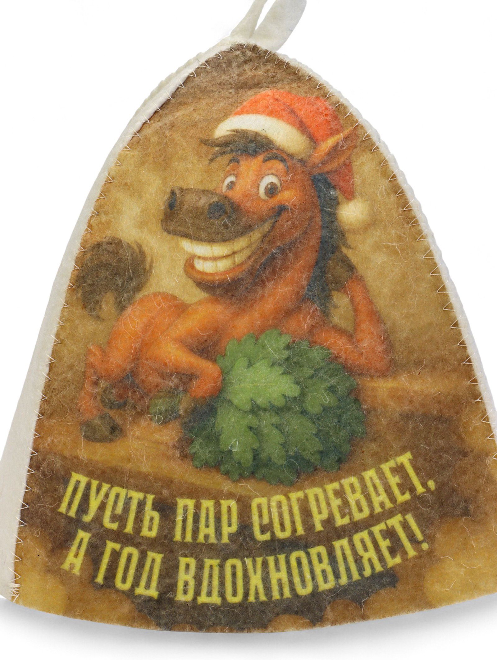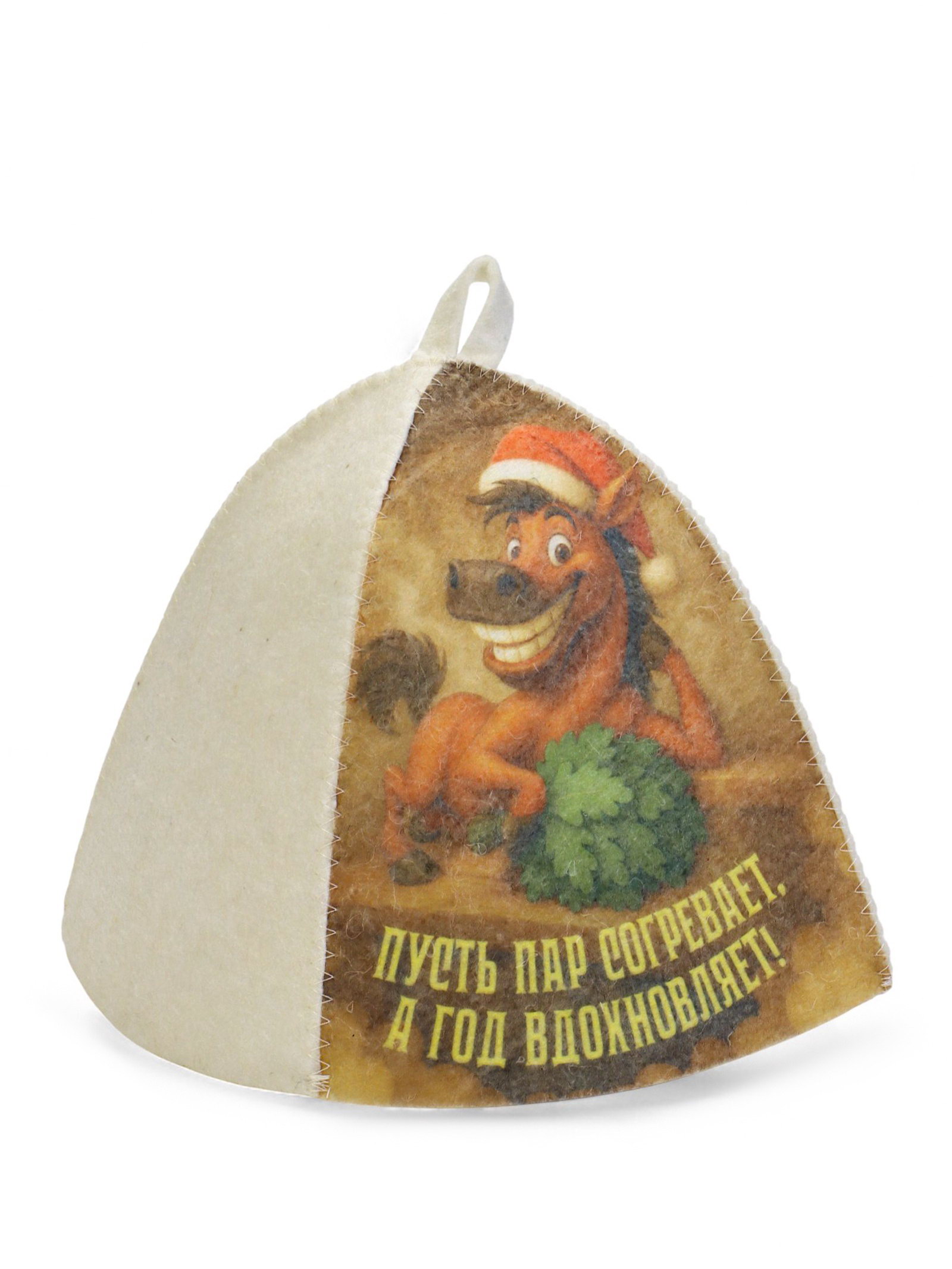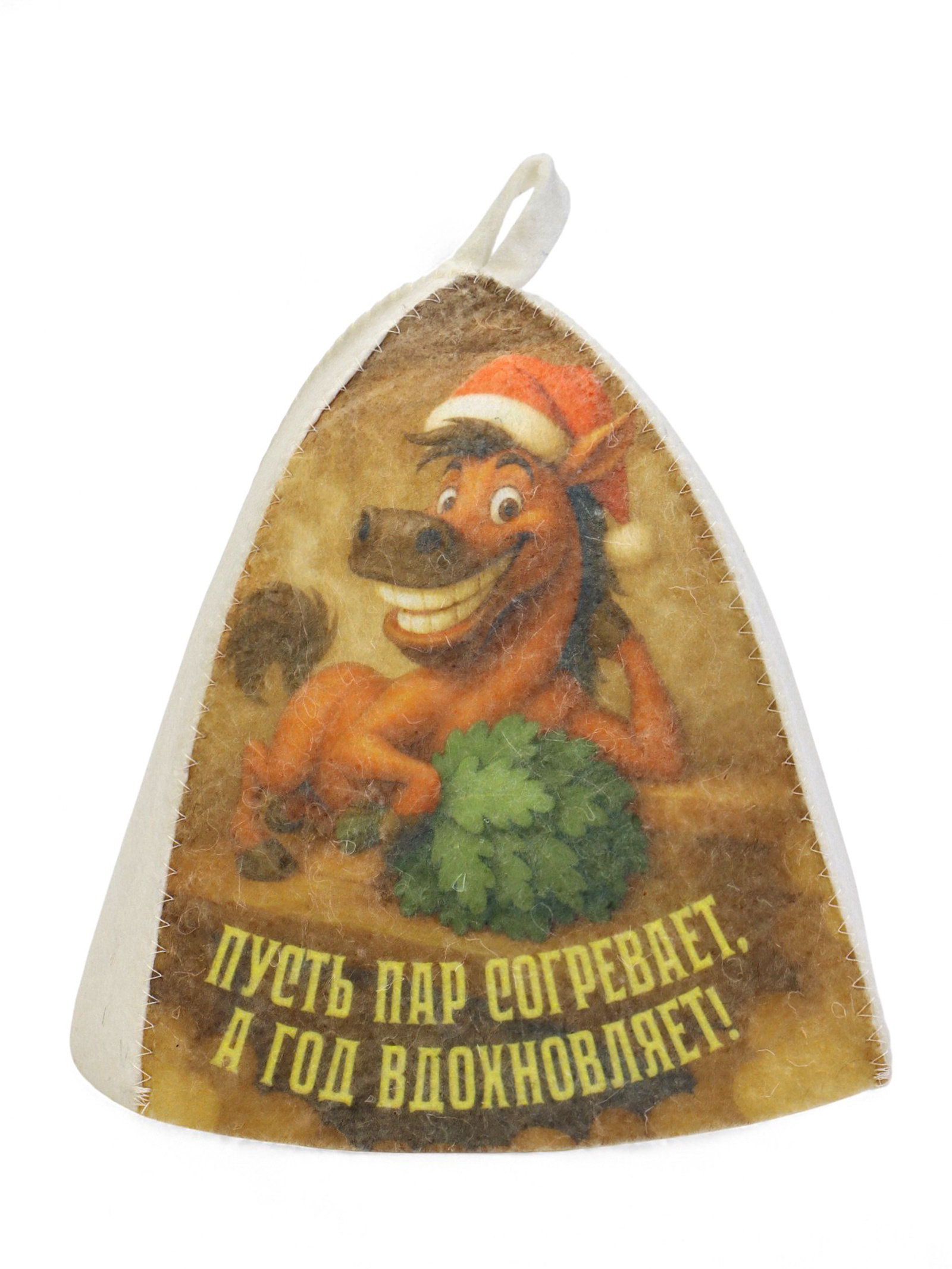 Шапка для бани и сауны "Пусть пар согревает, а год вдохновляет!", полиэфир 70%, шерсть 30%, Добропаровъ, Россия