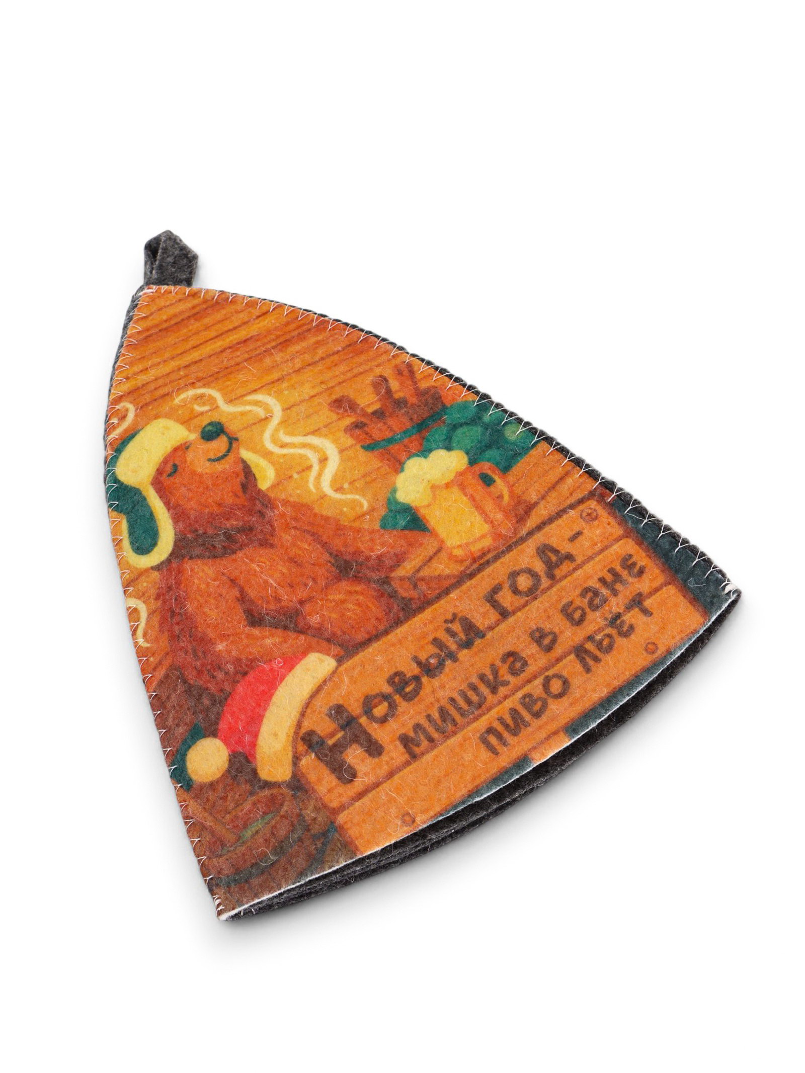 Шапка для бани и сауны "Новогодний мишка в бане", полиэфир 70%, шерсть 30%, Добропаровъ, Россия