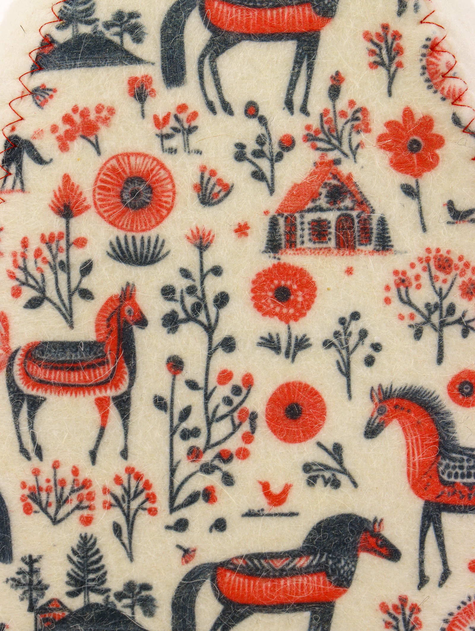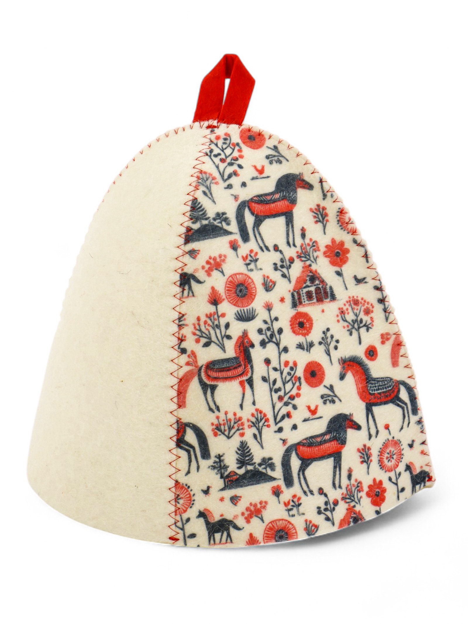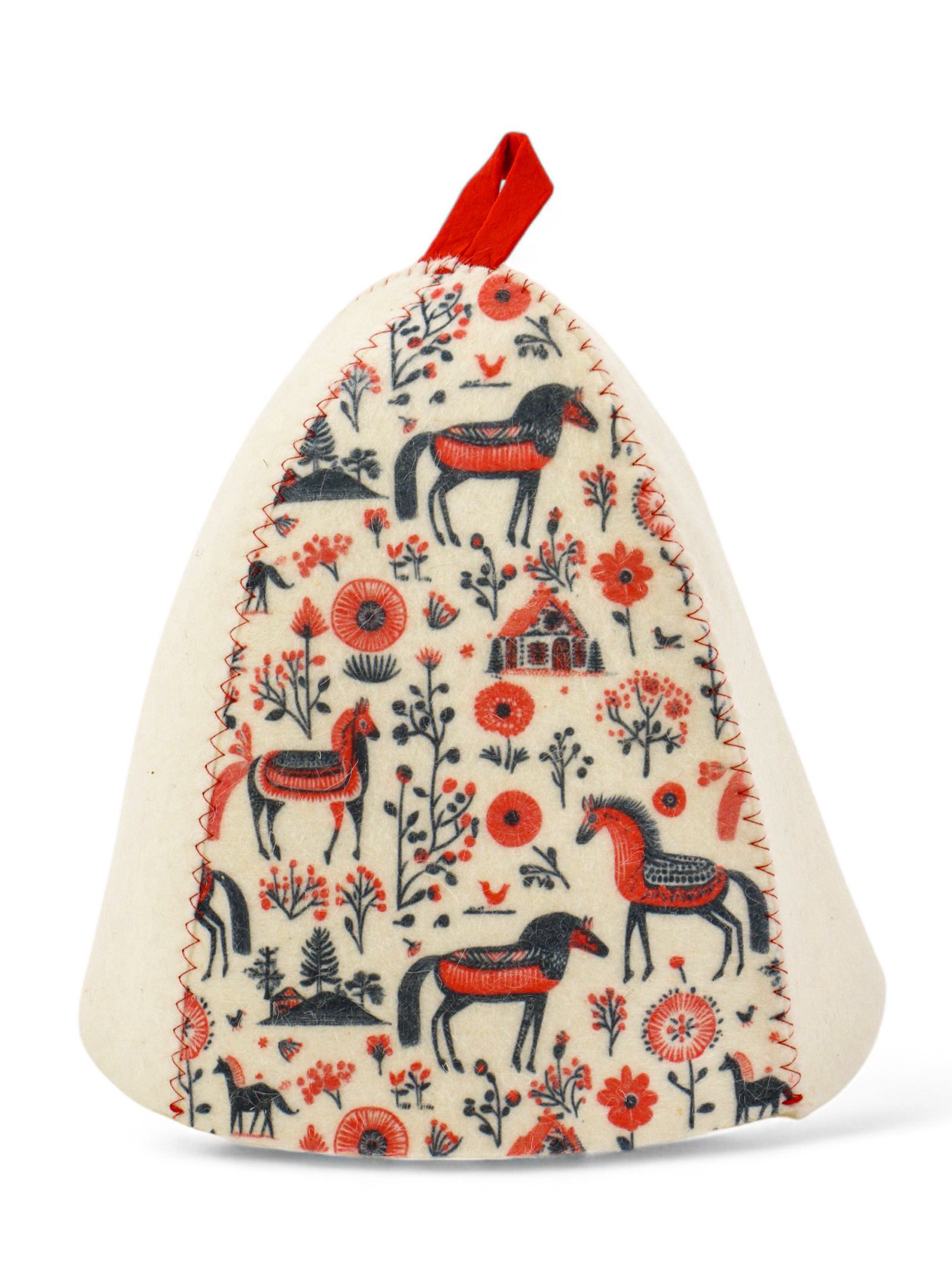 Шапка для бани и сауны "Мезенские кони", полиэфир 70%, шерсть 30%, Россия