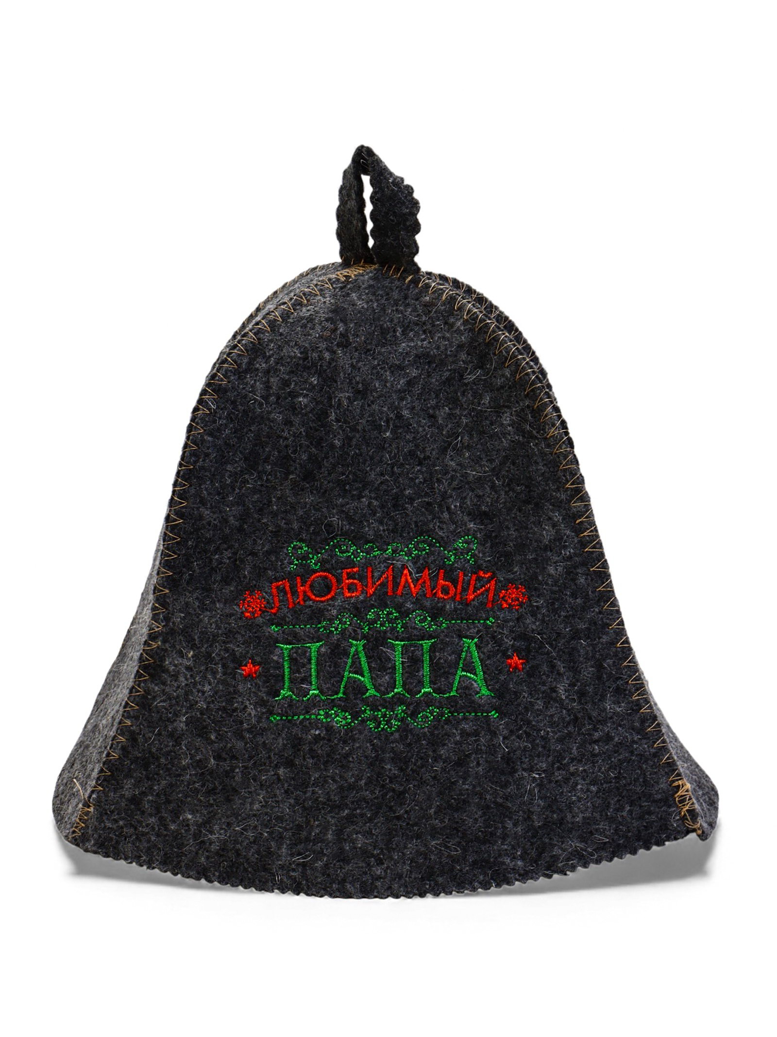Шапка для бани вышивка "Любимый папа", темная, Россия