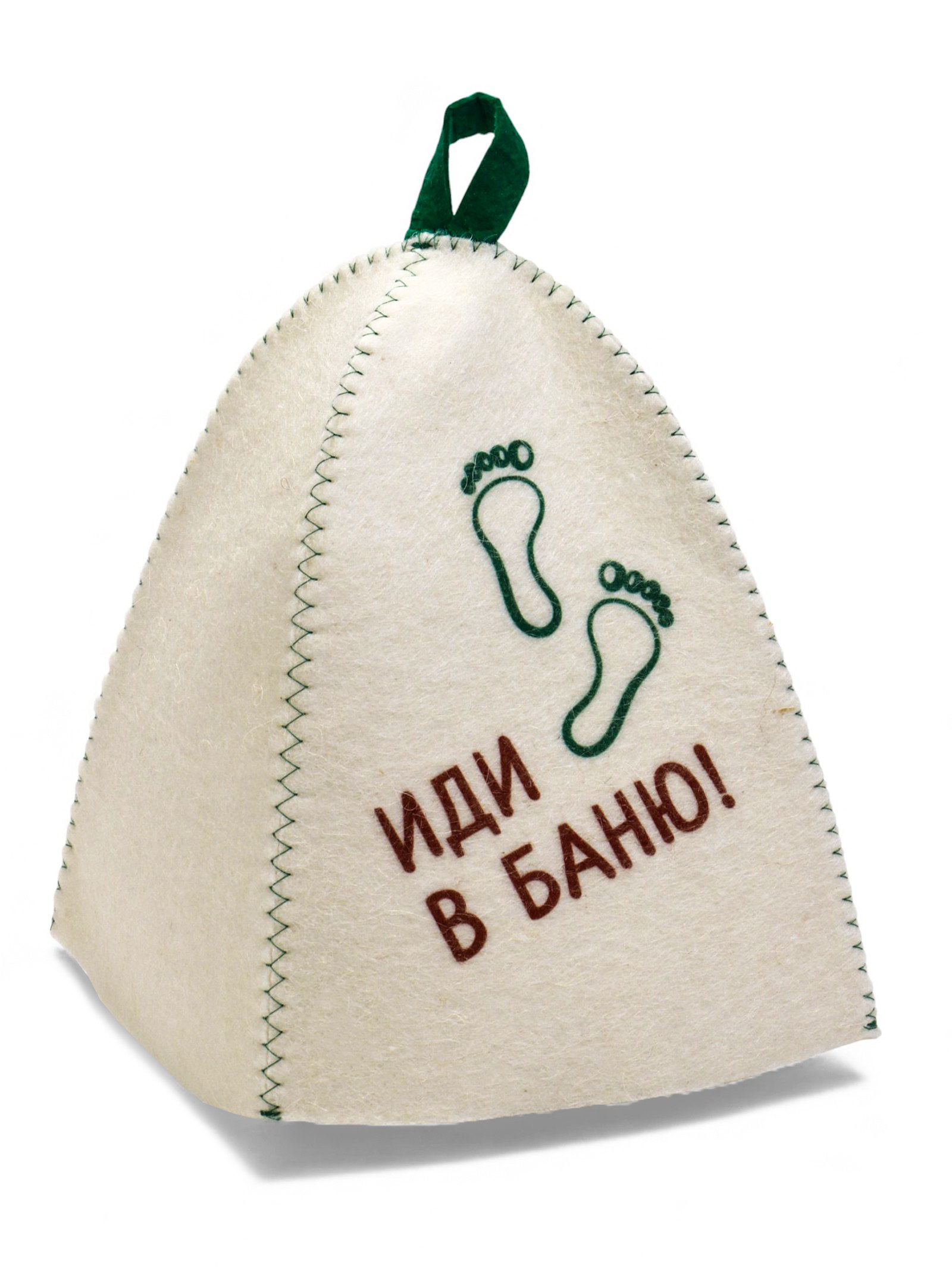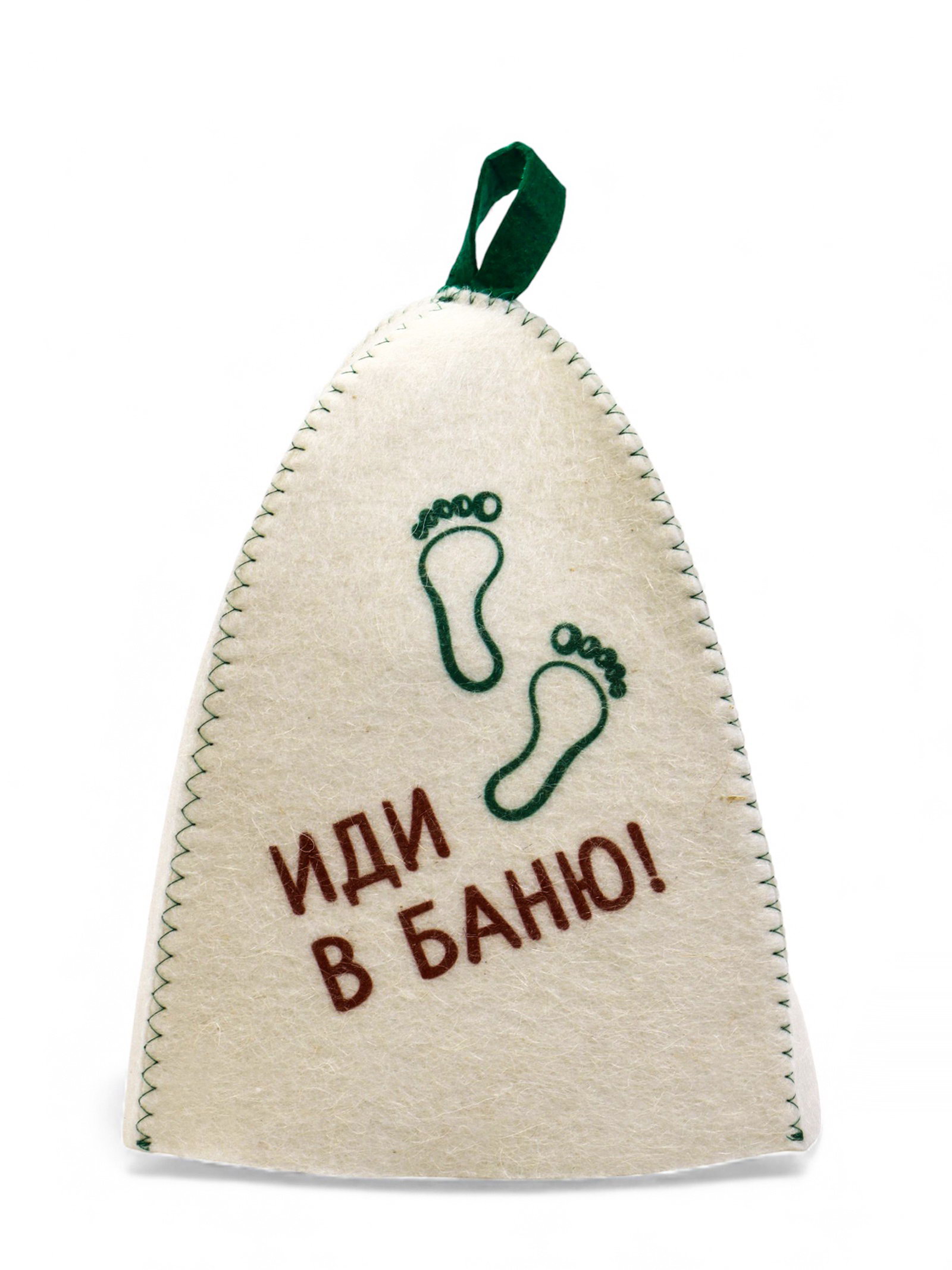 Шапка банная с принтом "Иди в баню", войлок белый, Россия