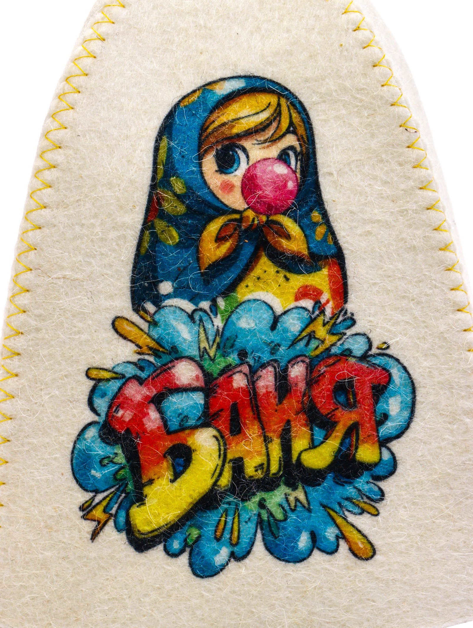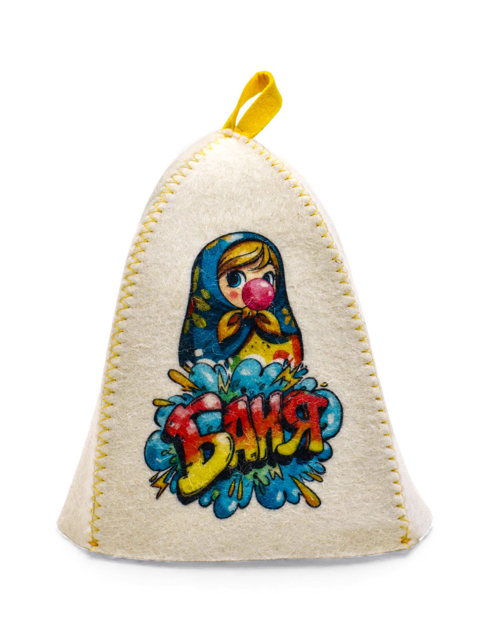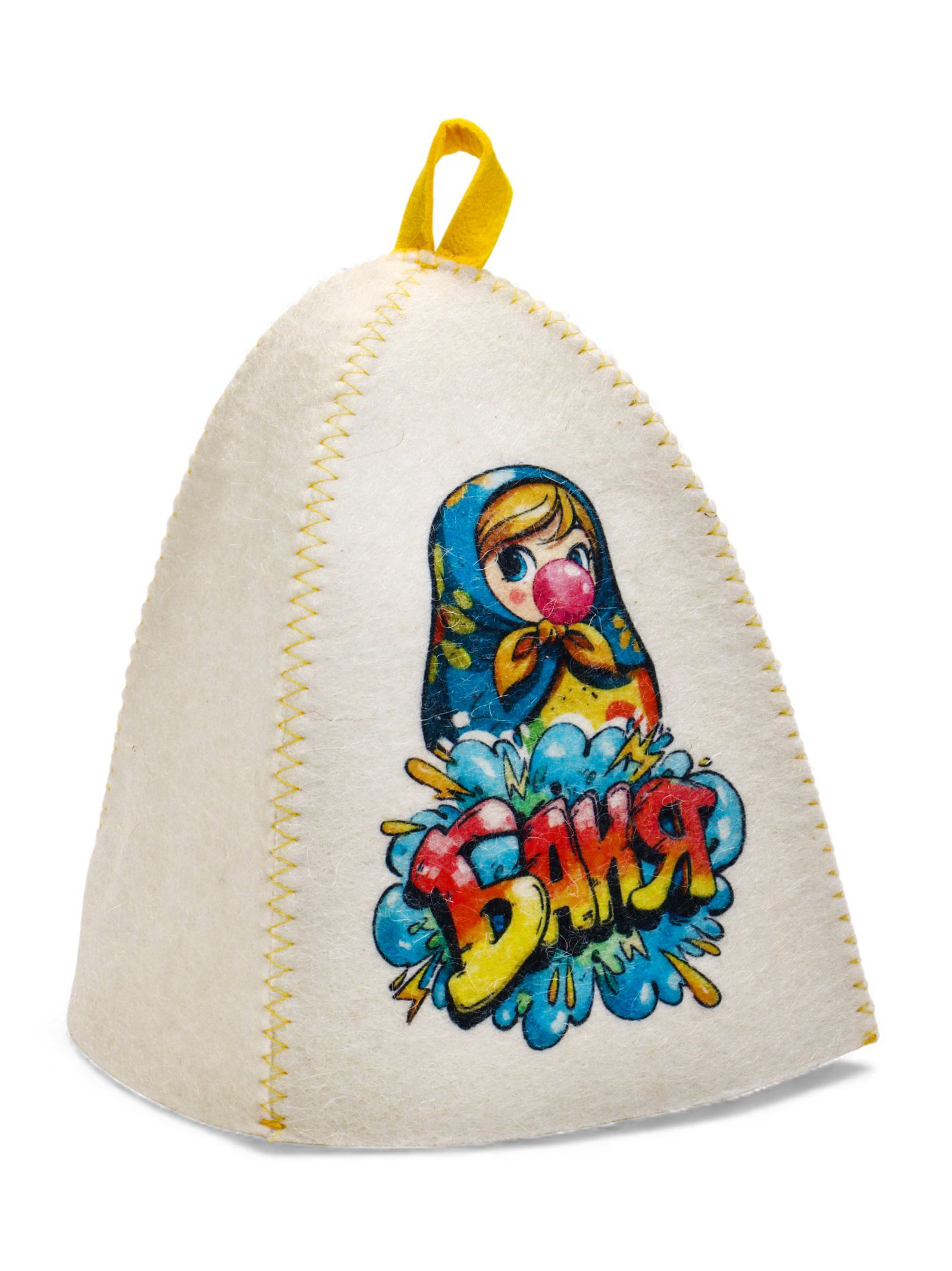 Шапка для бани с принтом "Матрешка баблгам", белая, Россия