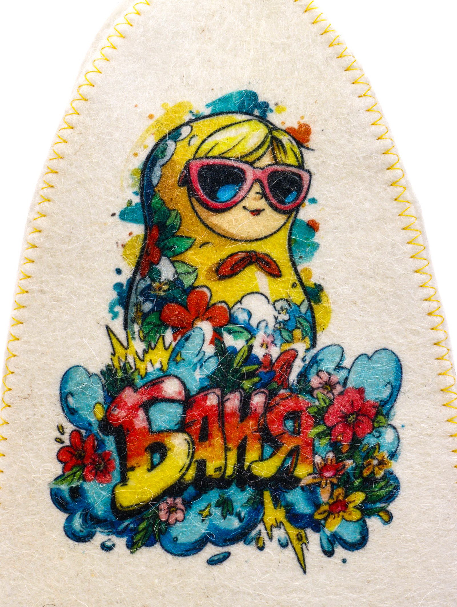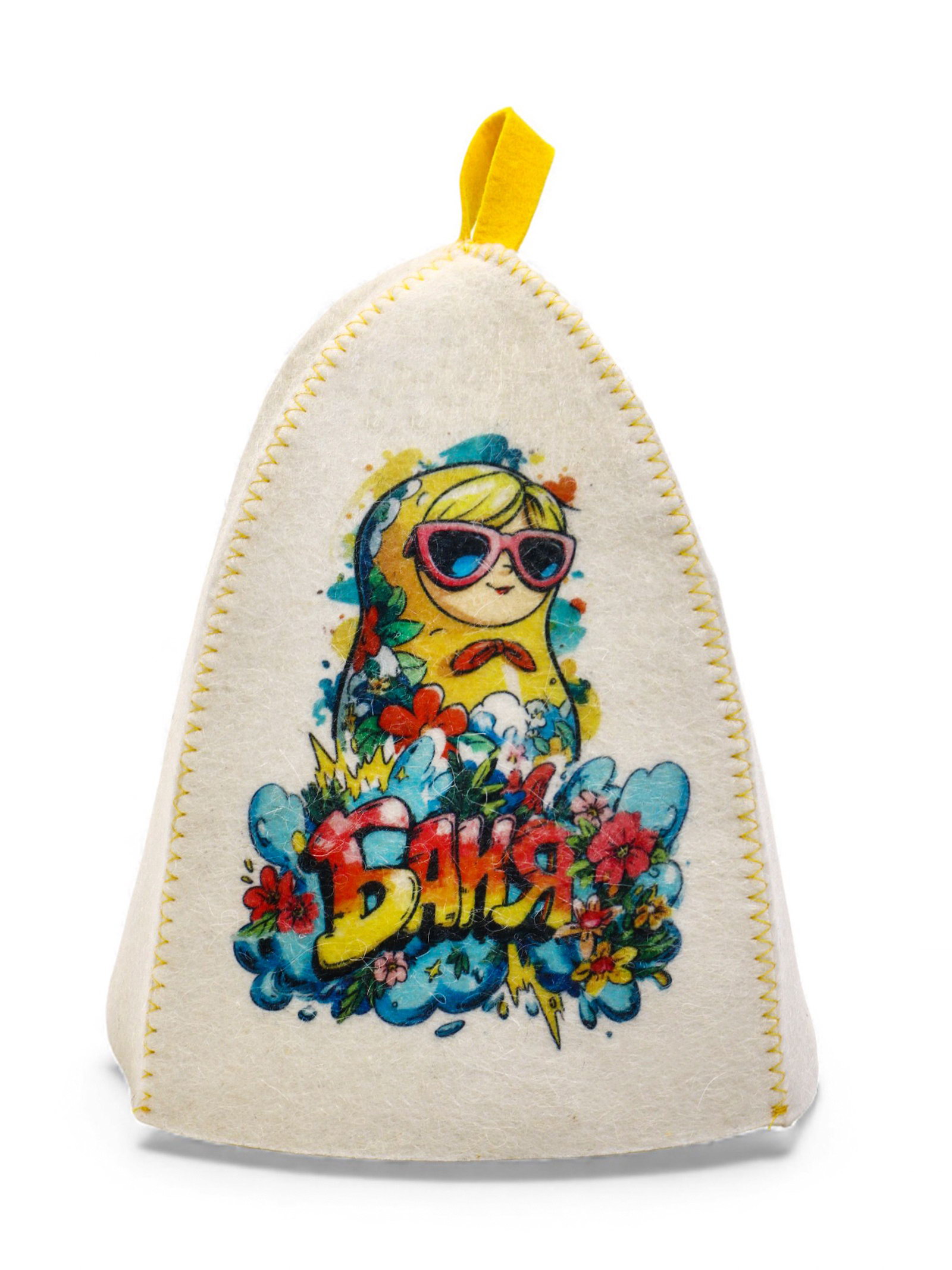 Шапка для бани с принтом "Матрешка в очках", белая, Россия