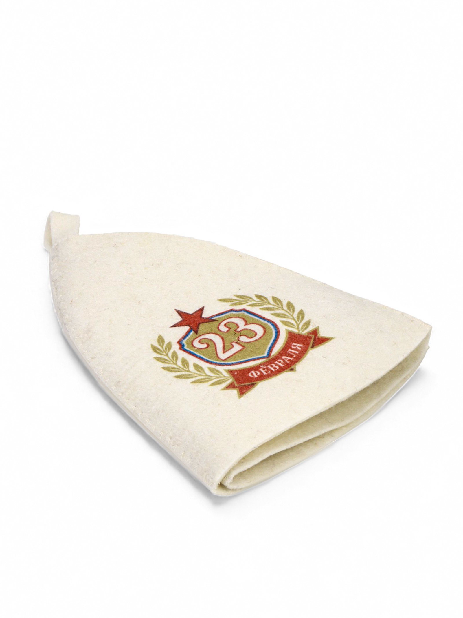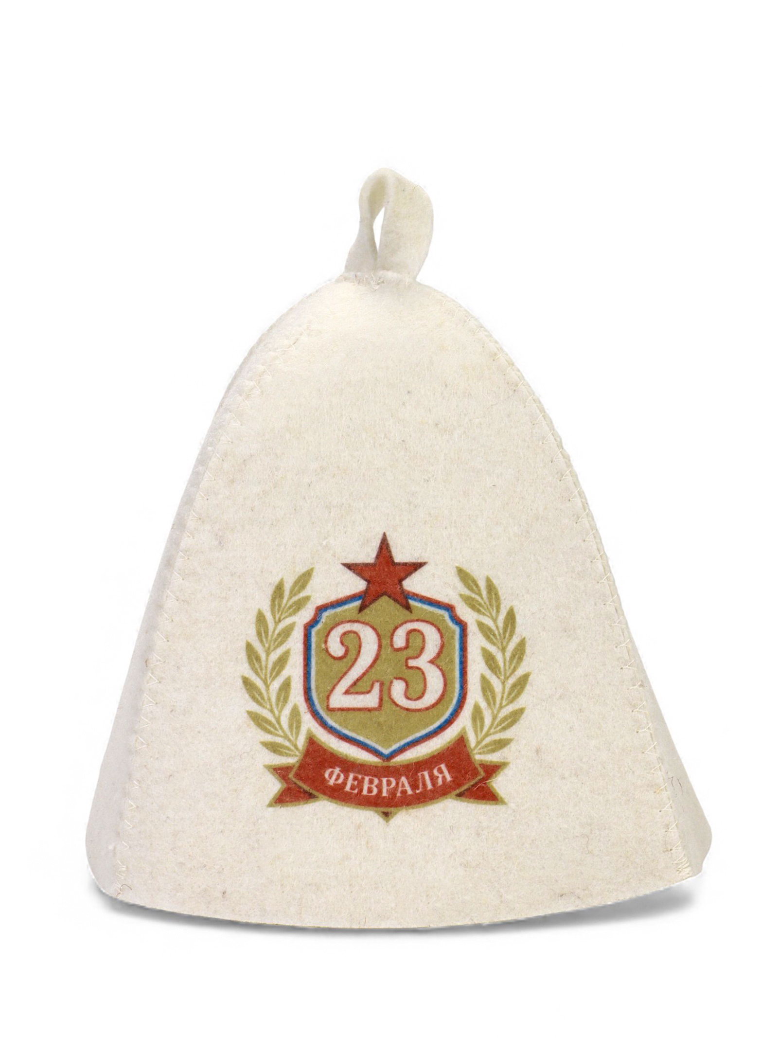 Шапка для бани с принтом "23 февраля", белая, Россия