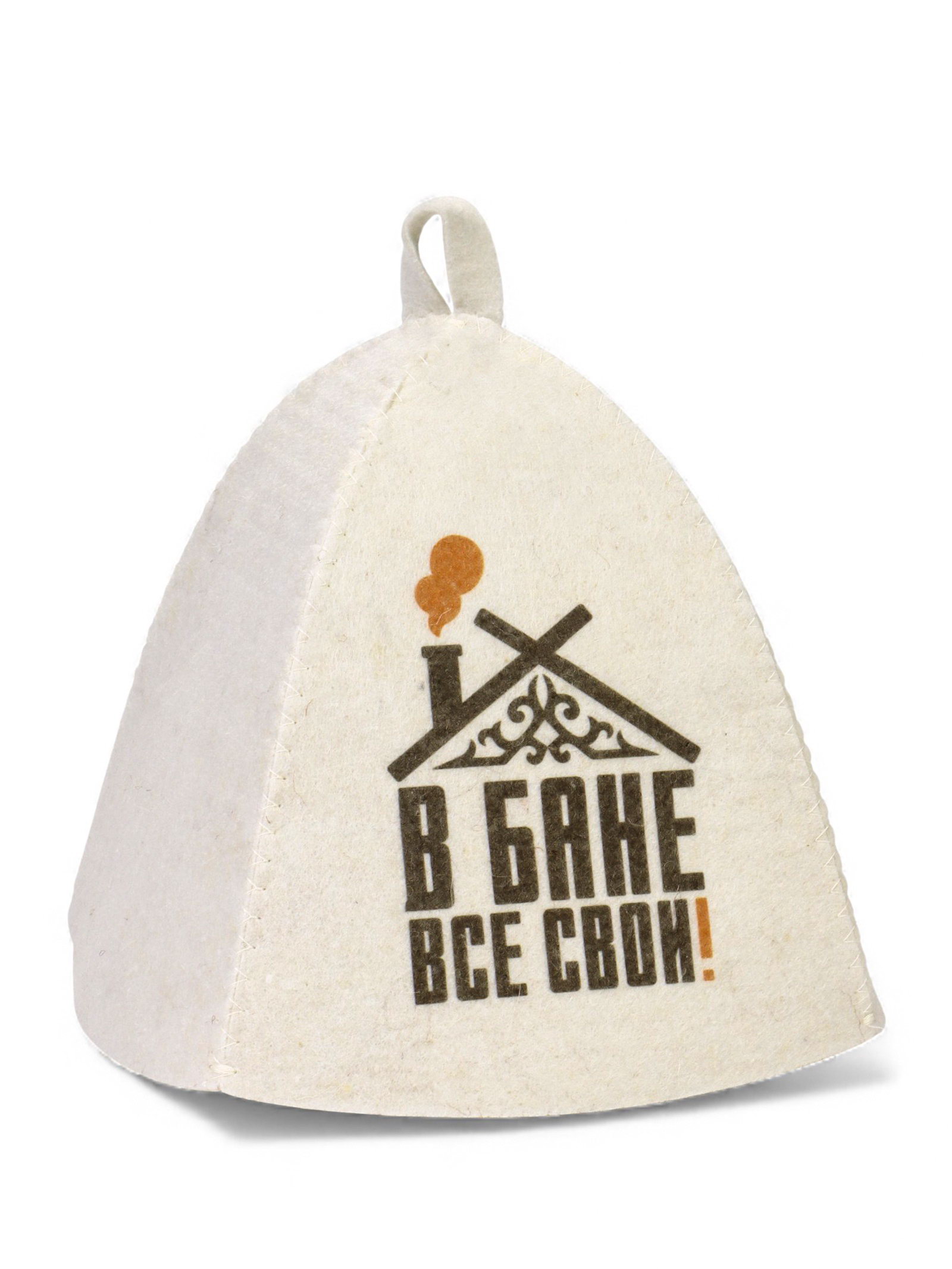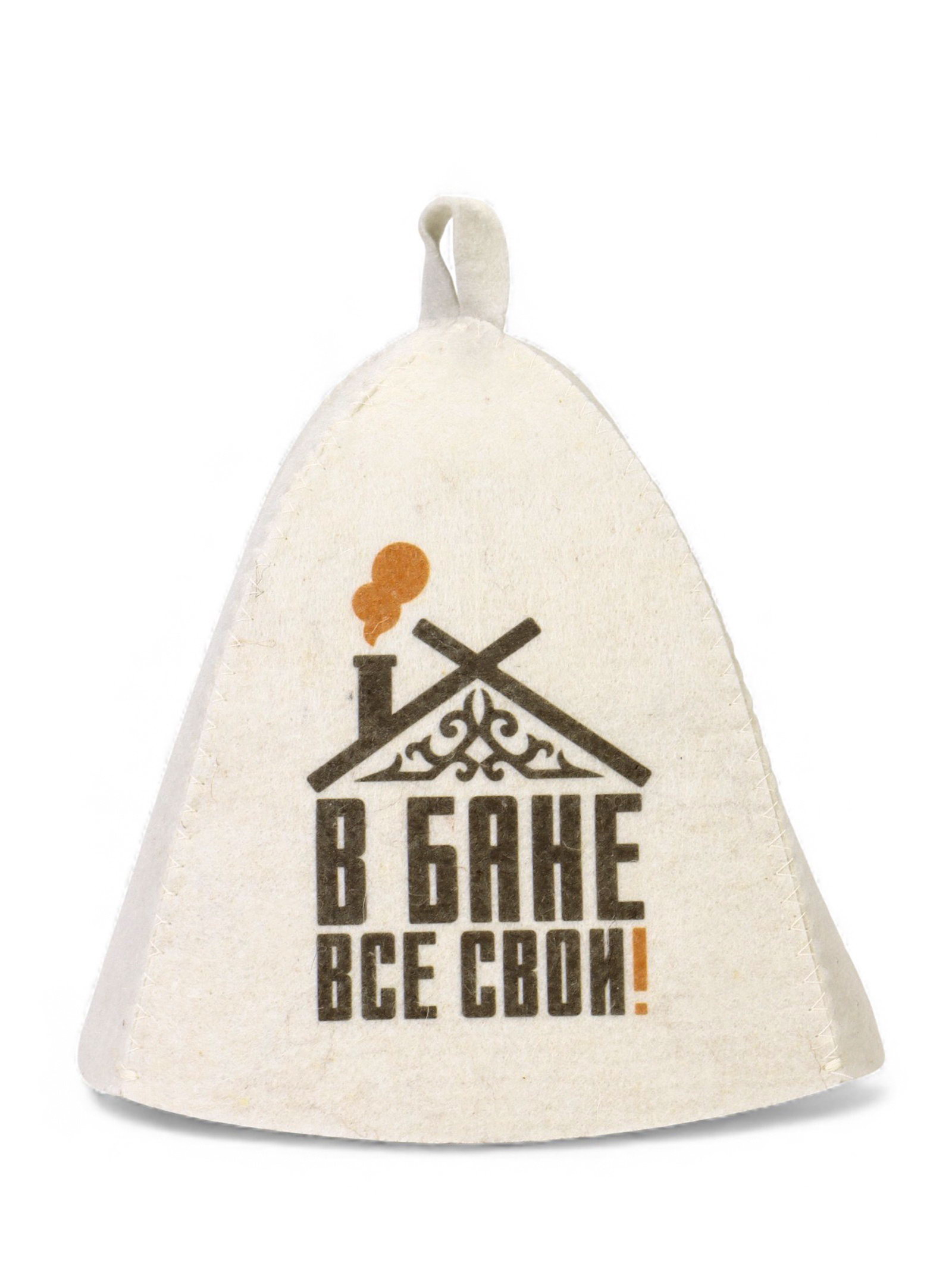 Шапка для бани с принтом "В бане все свои", белая, Россия