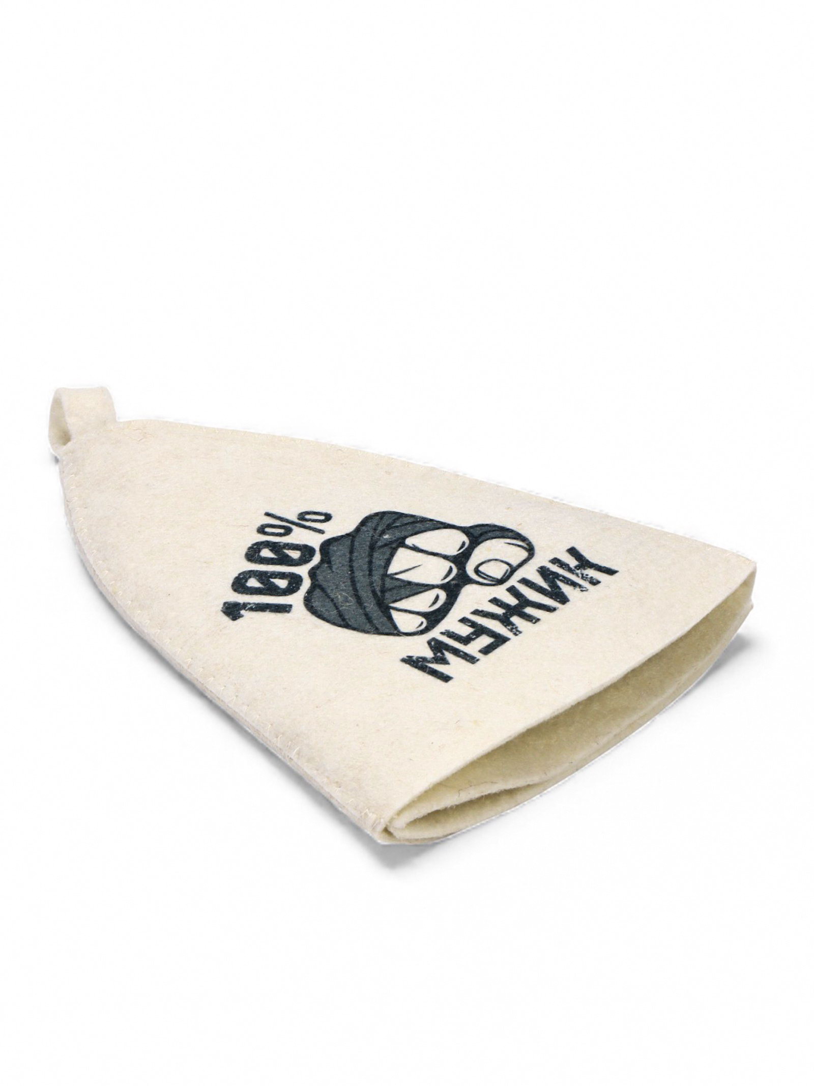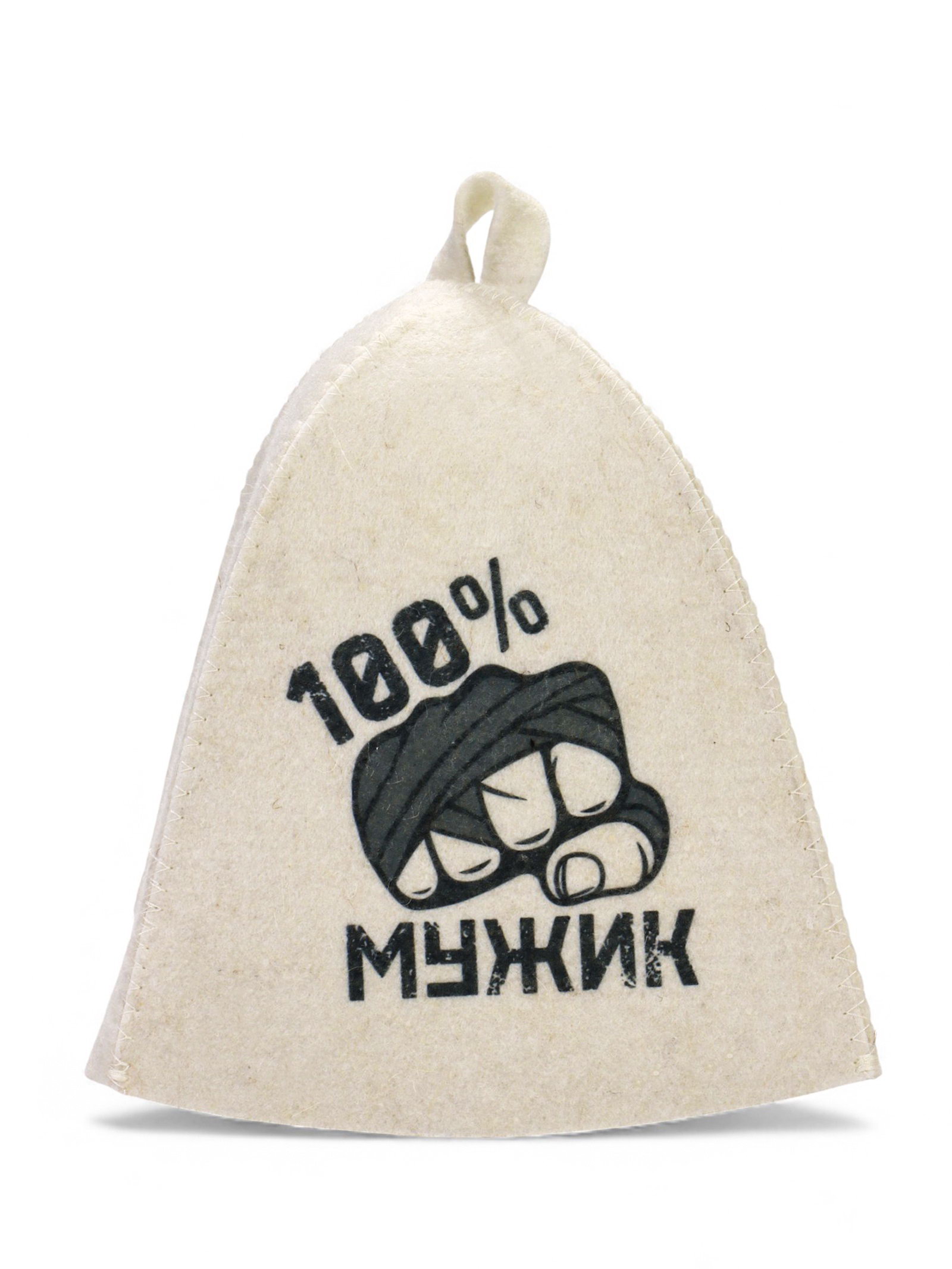 Шапка для бани с принтом "100% мужик", белая, Россия
