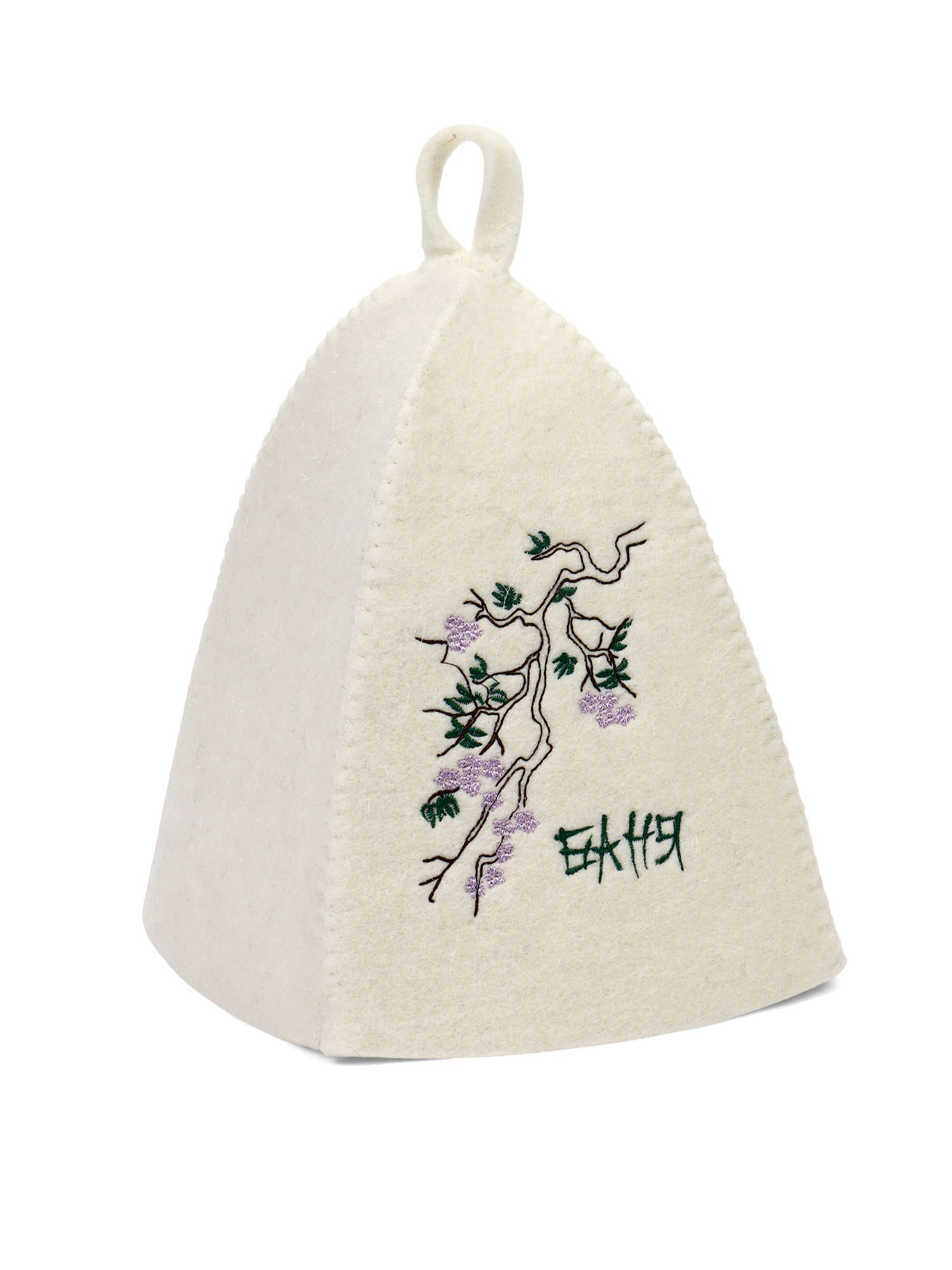 Шапка банная с вышивкой "Сакура", фетр белый, Россия