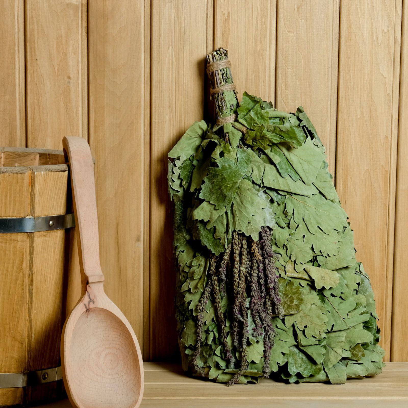 Веник для бани и сауны, дубовый, с шалфеем, Россия