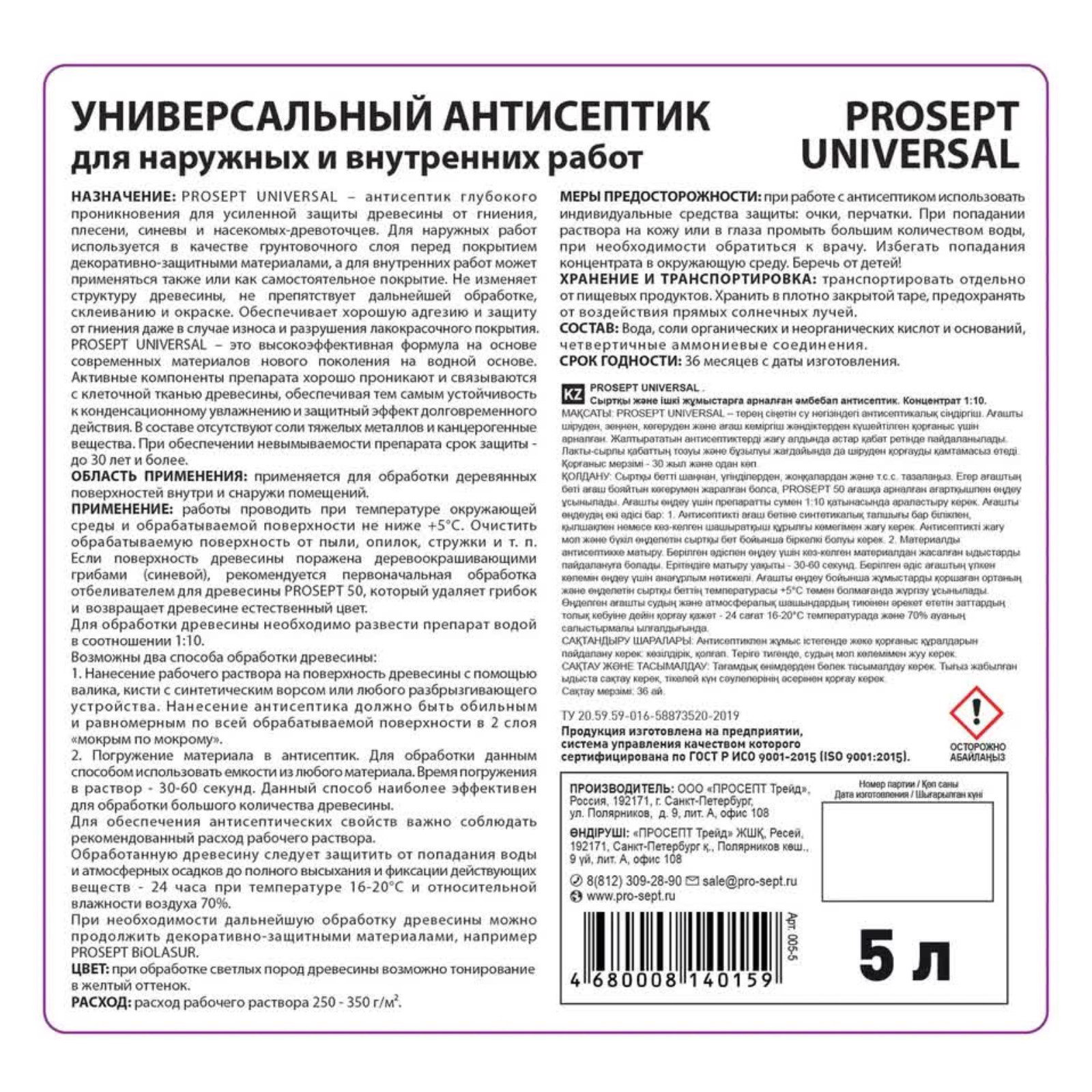Универсальный антисептик Eco Universal, готовый состав, 5л, 14x19x25 см., PROSEPT, Россия