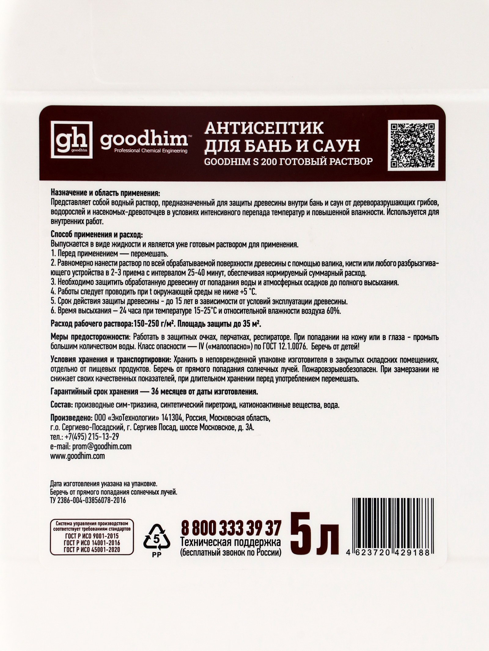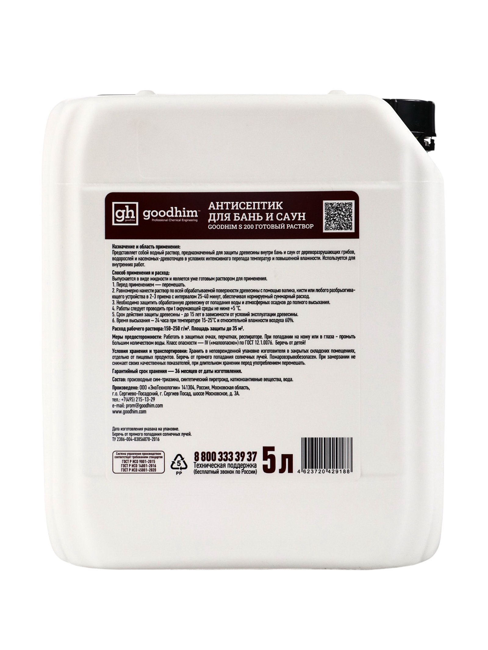 Антисептик для бань и саун S200, 5 л, Goodhim, Россия