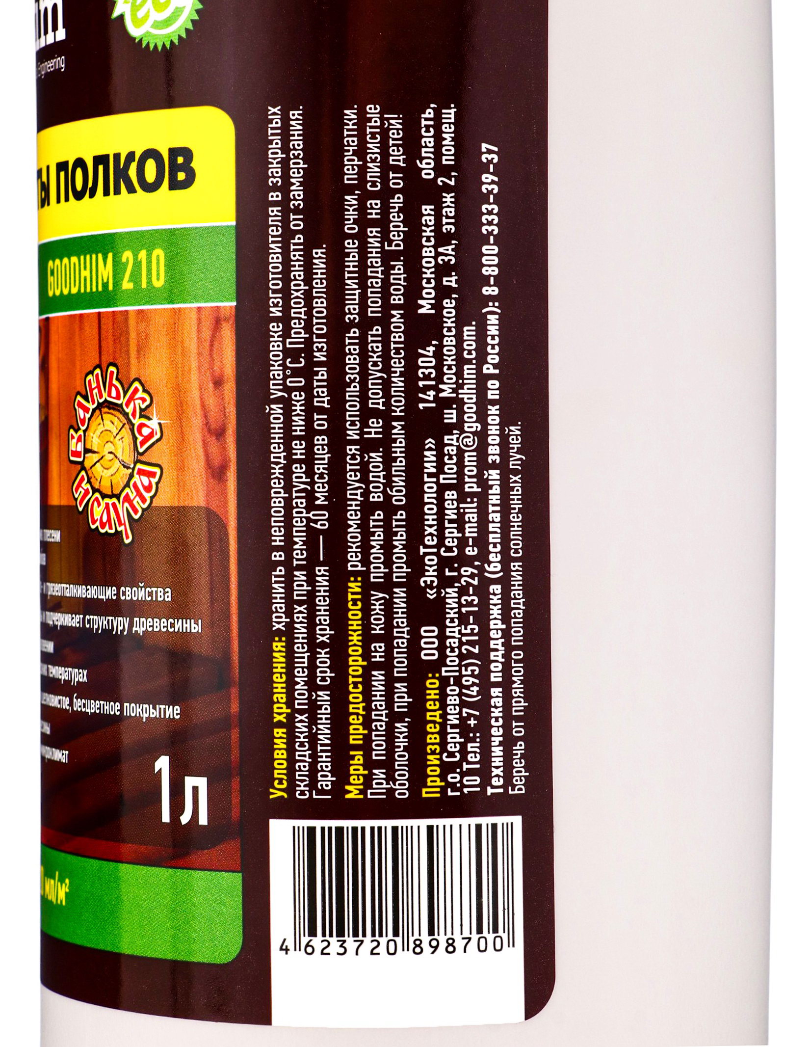 Вид: Масло, От плесени Размер упаковки: 5.5 x 23 x 11 см. tnved: 32081090000000 Запрет реализации по сегментам: 00000000208 Цвет: Прозрачный Вес/Объём: 1 л Масло Goodhim-210 предохраняет полки в банях и саунах от грязи и влаги. Применяется в качестве финишной отделки как самостоятельное защитное и декоративное покрытие и для обработки деревянных поверхностей, контактирующих с кожей человека. Особенности: