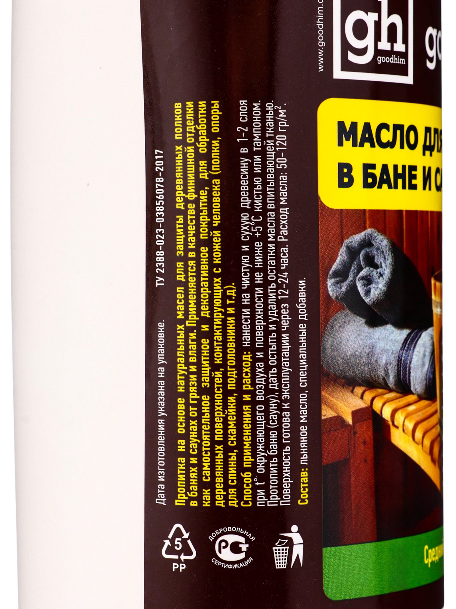Масло для защиты полок в бане и сауне-210, 1 л, Goodhim, Россия
