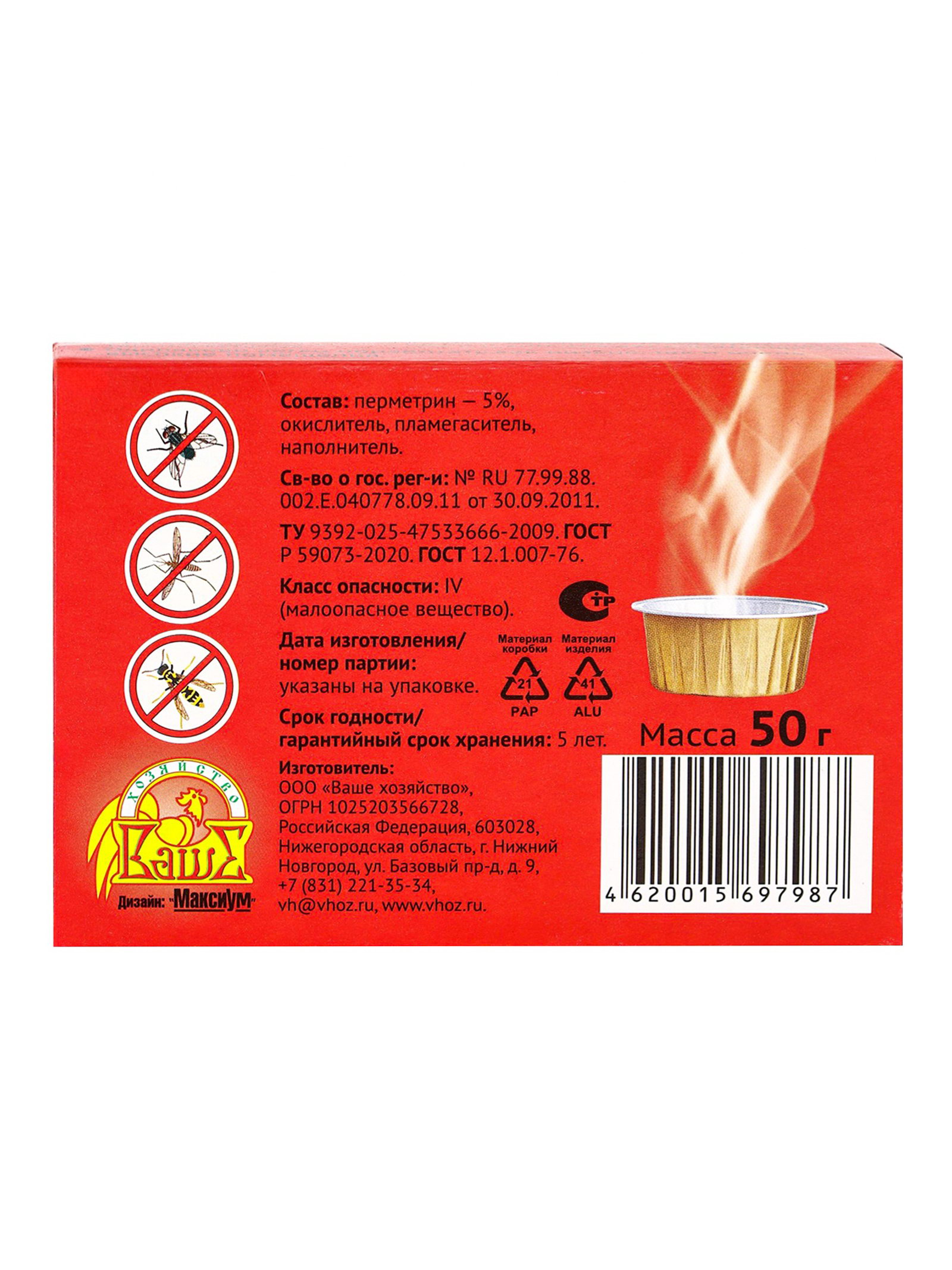 Дымовая инсектицидная шашка от мух, комаров и ос, 50 г, Мухояр, Россия