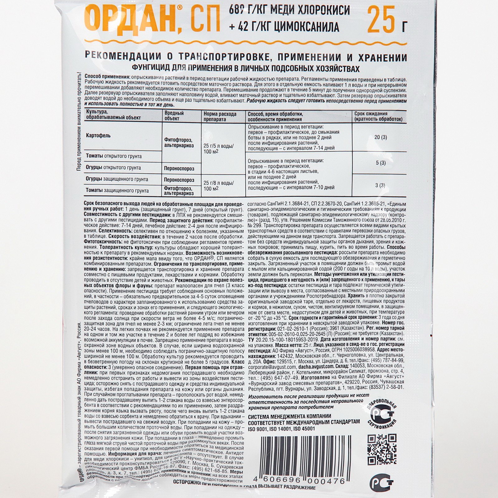 Средство от болезней на картофеле и овощных культурах "Ордан", 25 г, Август, Россия