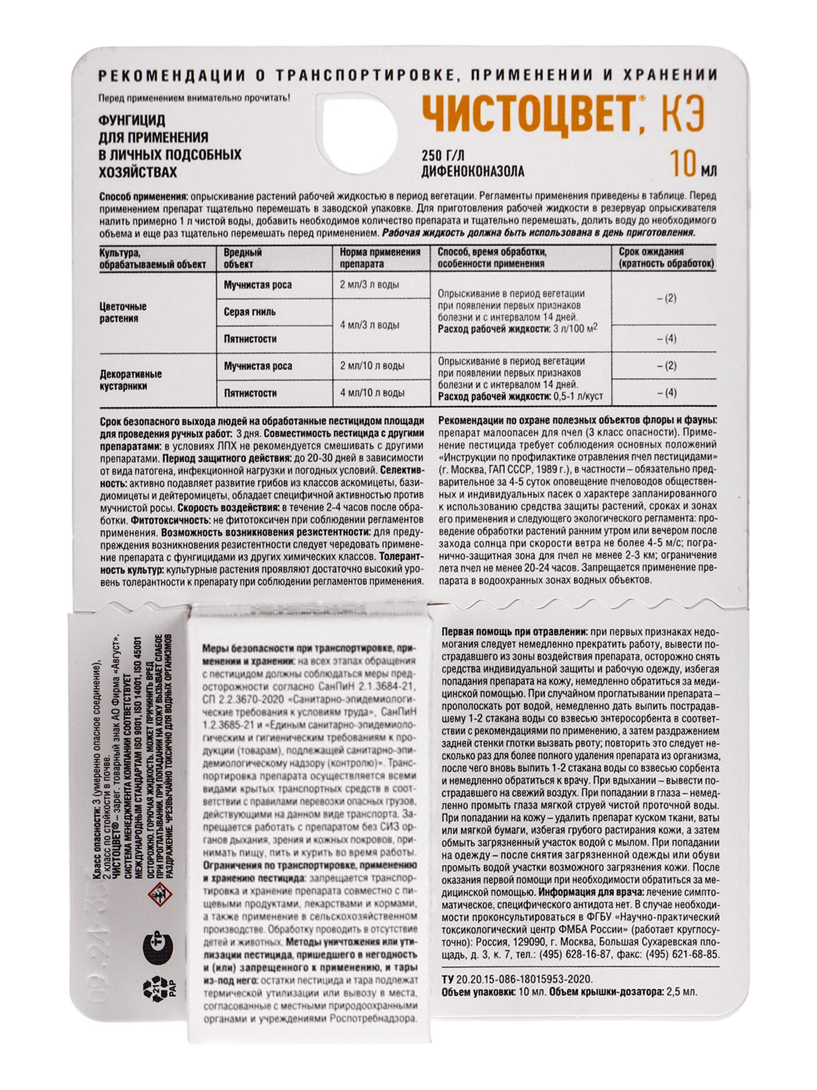 Действующее вещество: 250г/л дифеноконазола. Срок годности: 3 года. | ||