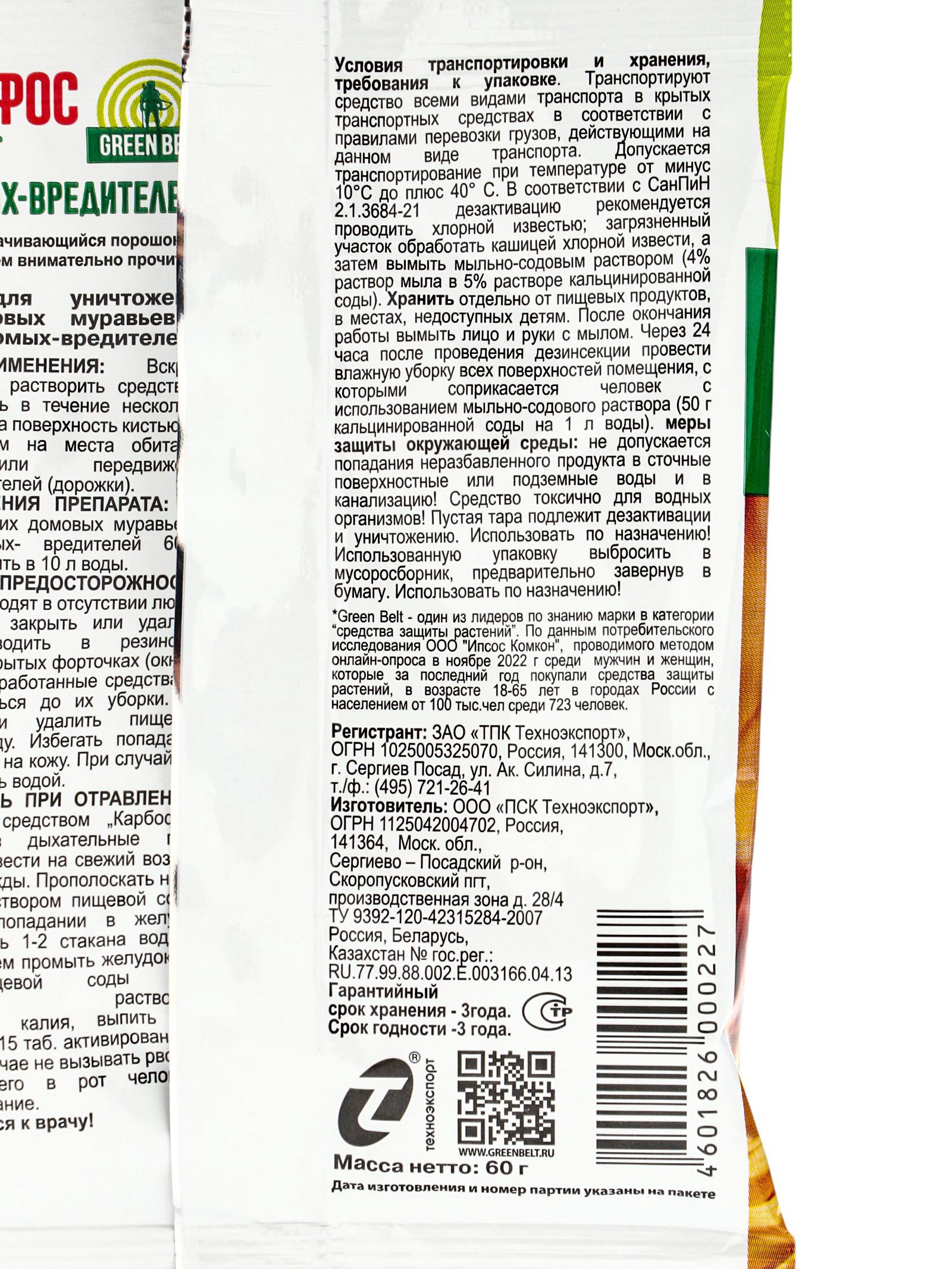 Средство Карбофос от насекомых-вредителей 60 г, ГРИН БЭЛТ, Россия