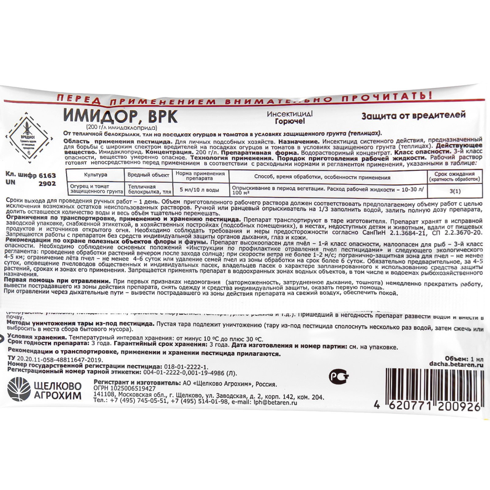 Средство от вредителей на огурцах и томатах "Имидор", 1 мл, Щелково Агрохим, Россия