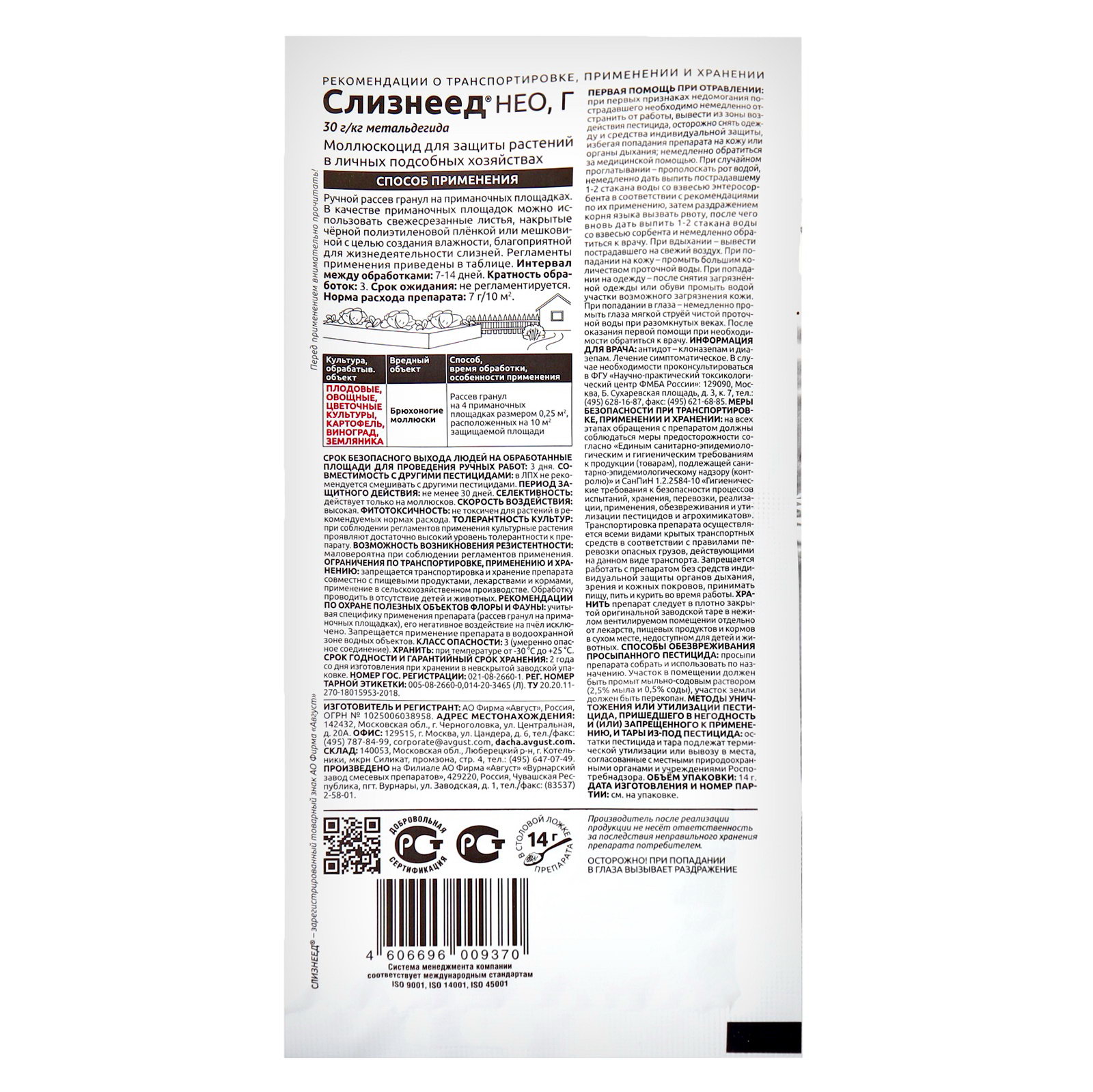 Средство от слизней "Слизнеед НЕО", 14 г, Август, Россия