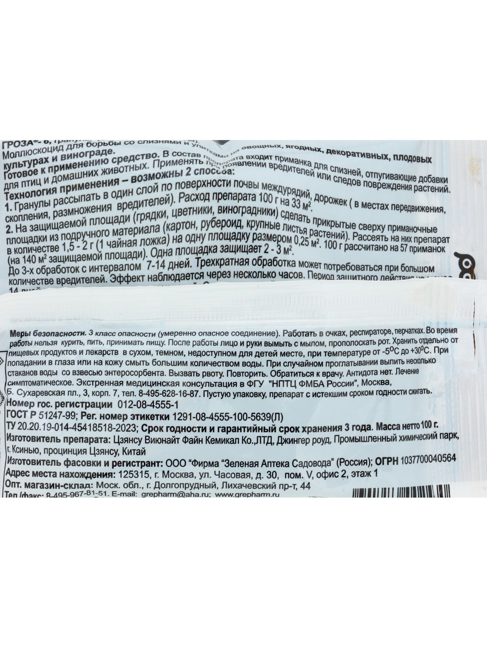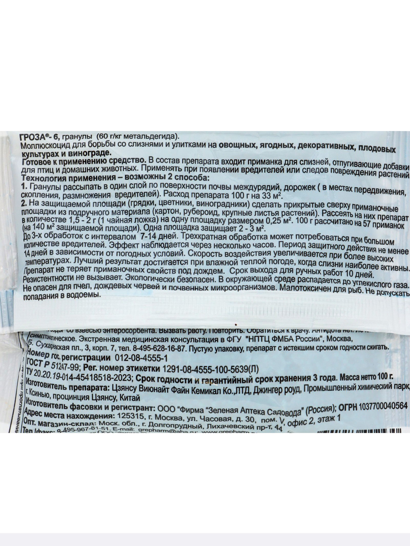 Средство для борьбы со слизнями и улитками Гроза-3, 100 г, Зеленая аптека садовода, Россия
