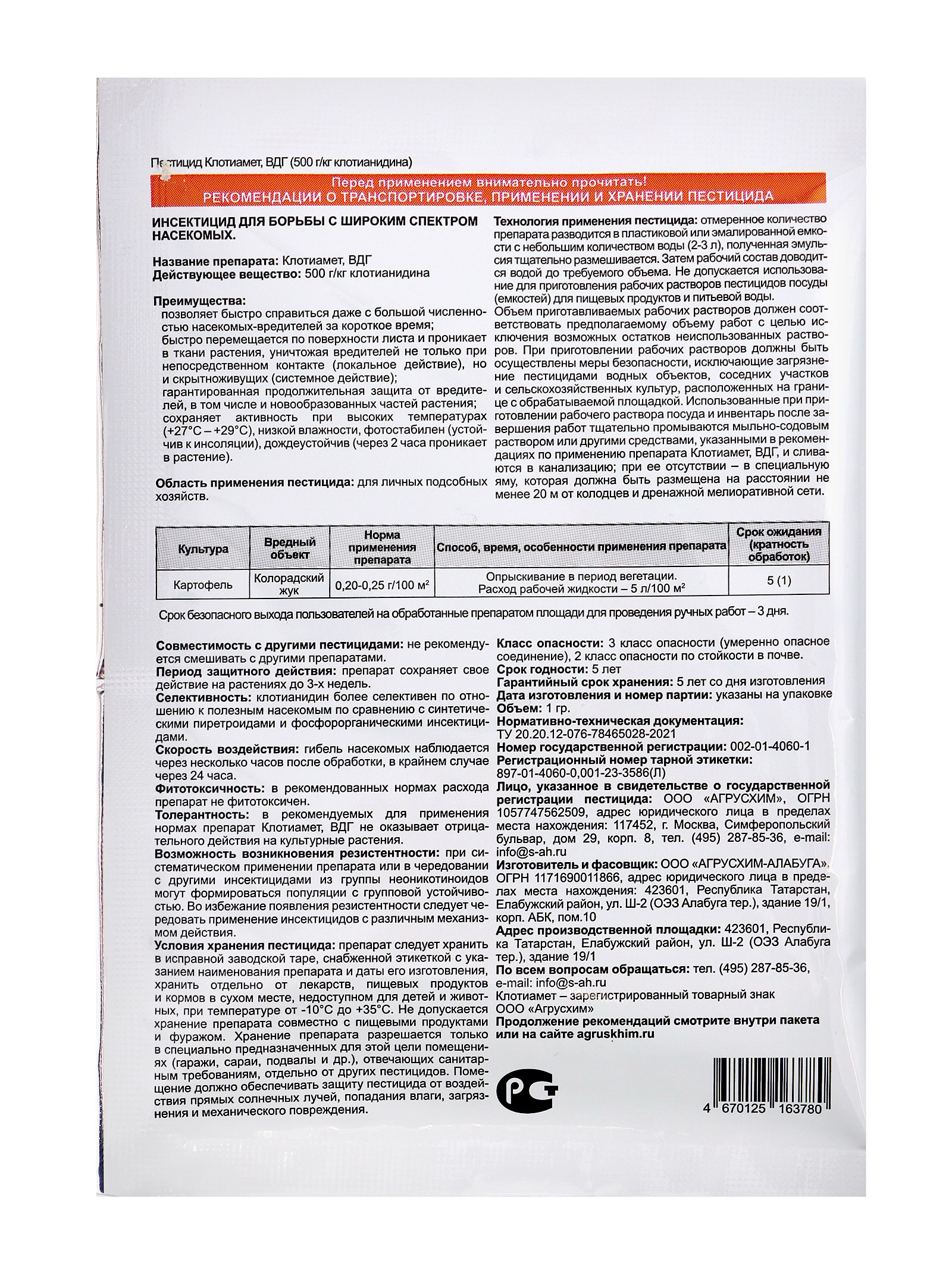 Средство от колорадского жука "Клотиамет", 1 г, Агрусхим, Россия