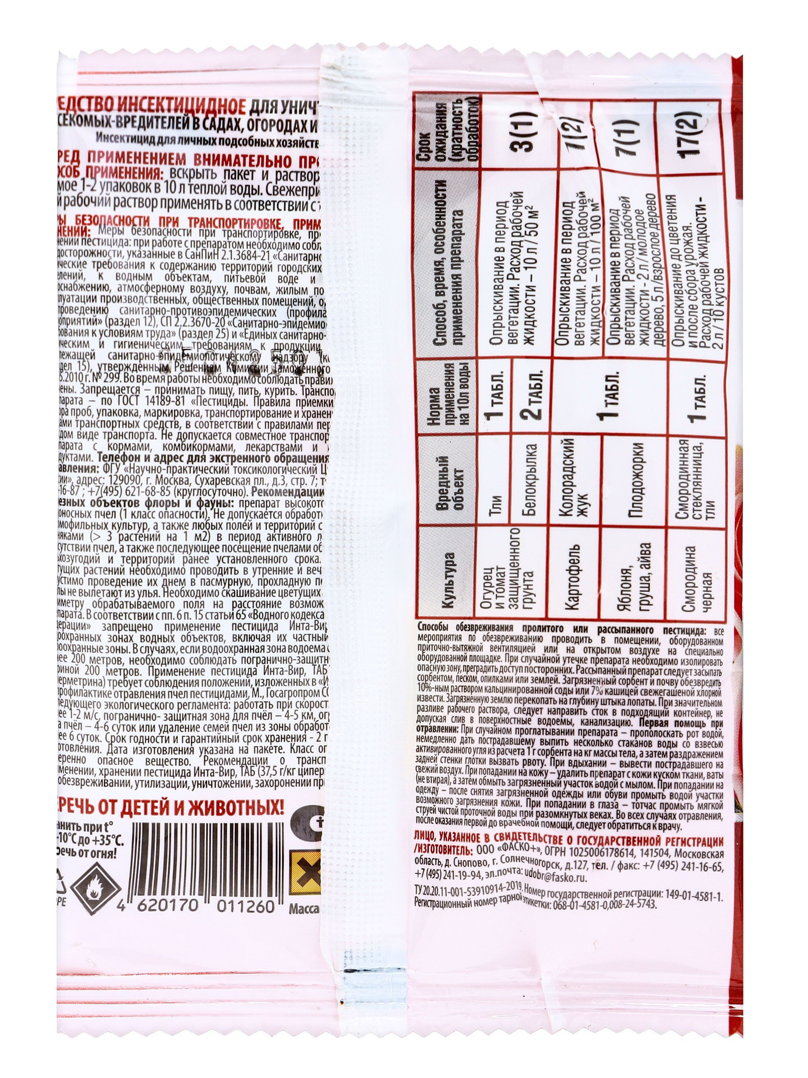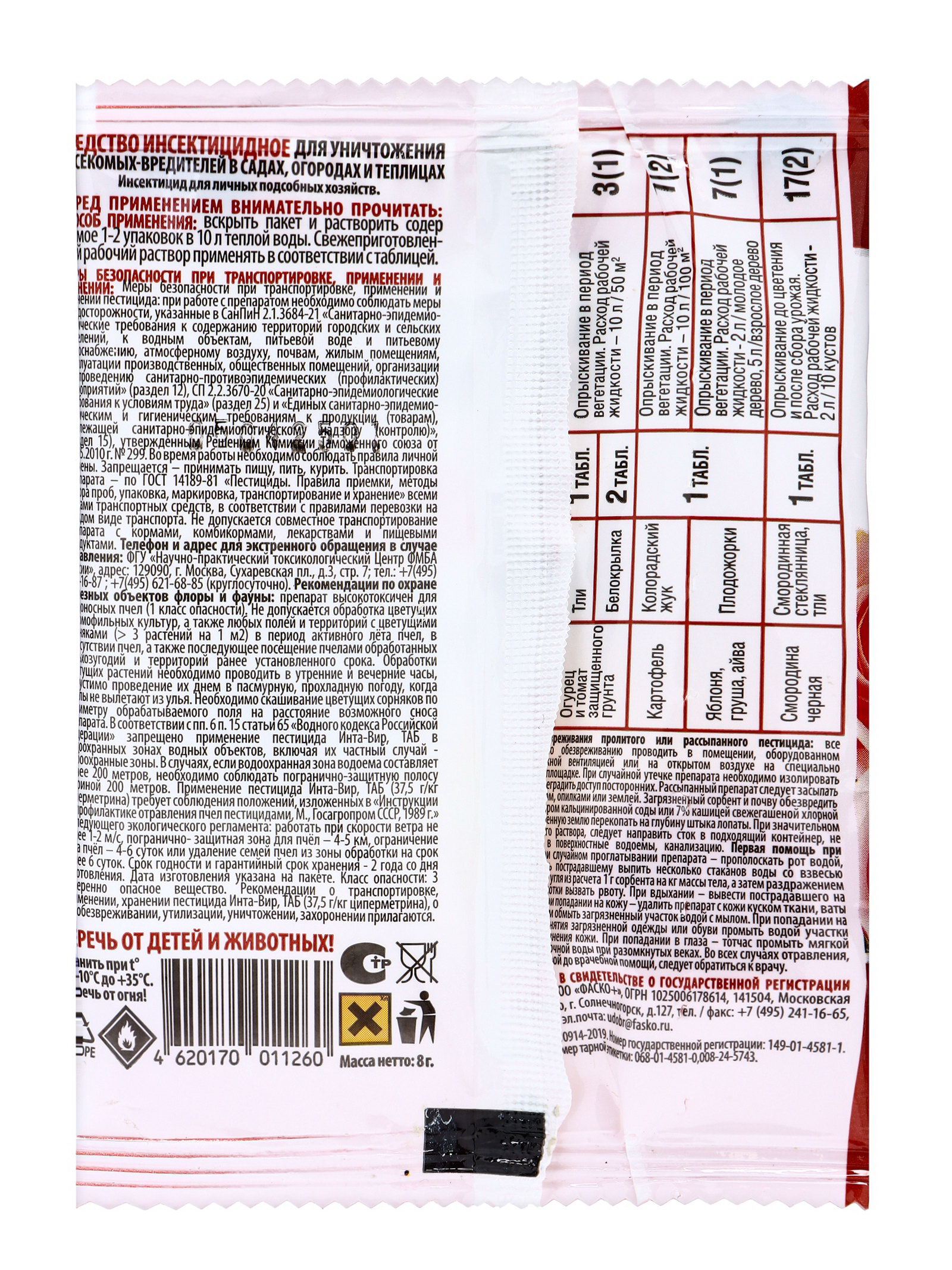 Инсектицид "Инта-Вир" от комплекса вредителей, таблетка, 8 г, Россия