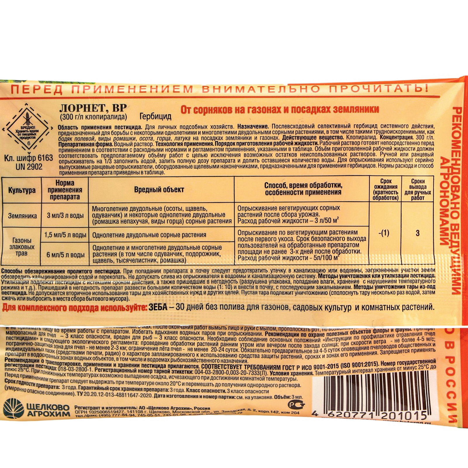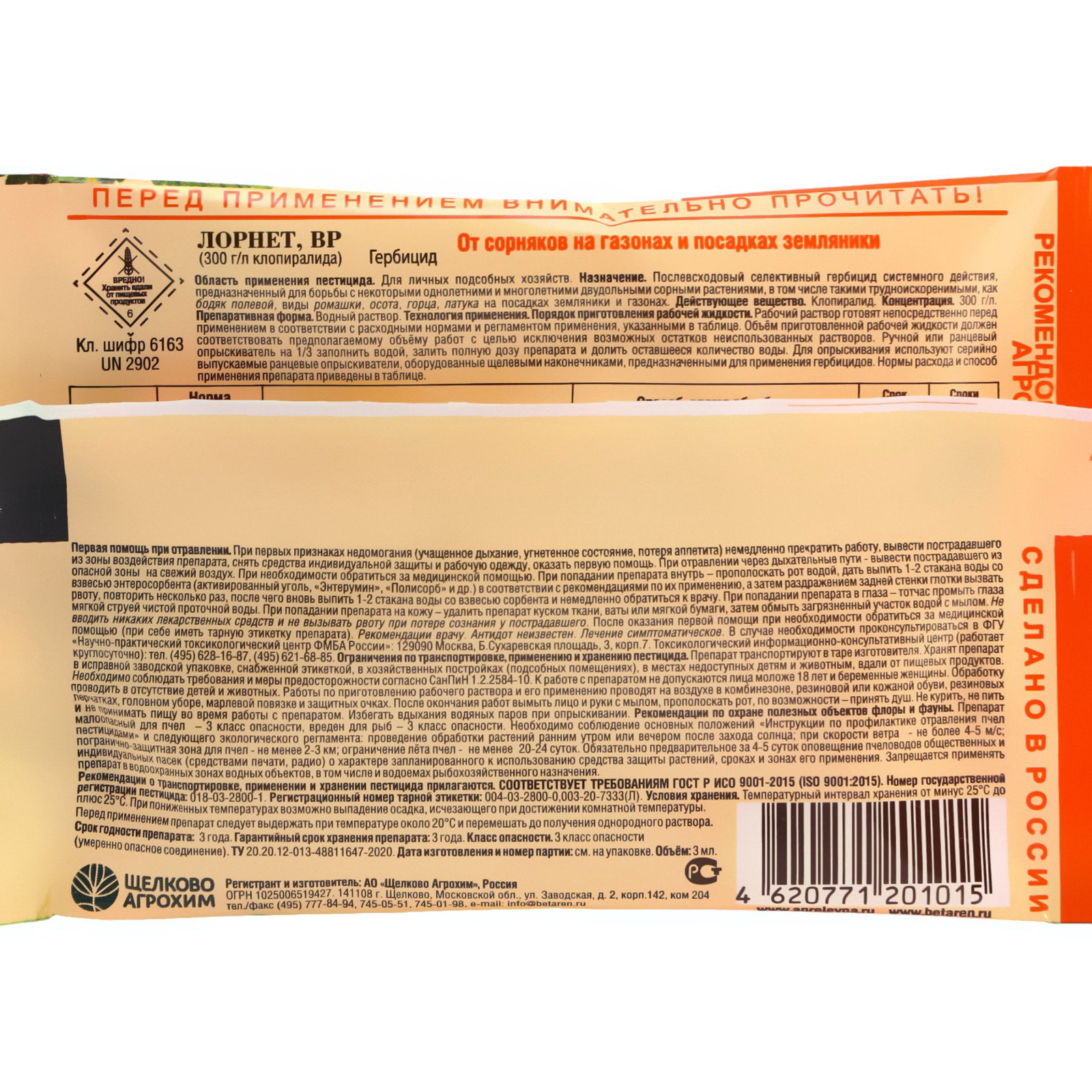 Гербицид для уничтожения сорняков на газоне и землянике "Лорнет", ампула, 3 мл, Щелково Агрохим, Россия