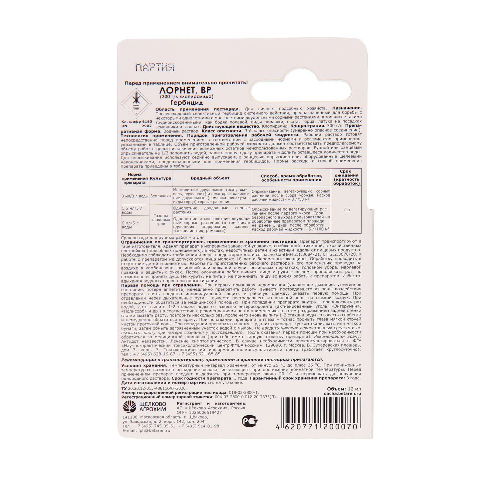 Гербицид для уничтожения сорняков на газоне и землянике "Лорнет", флакон, 12 мл, Щелково Агрохим, Россия