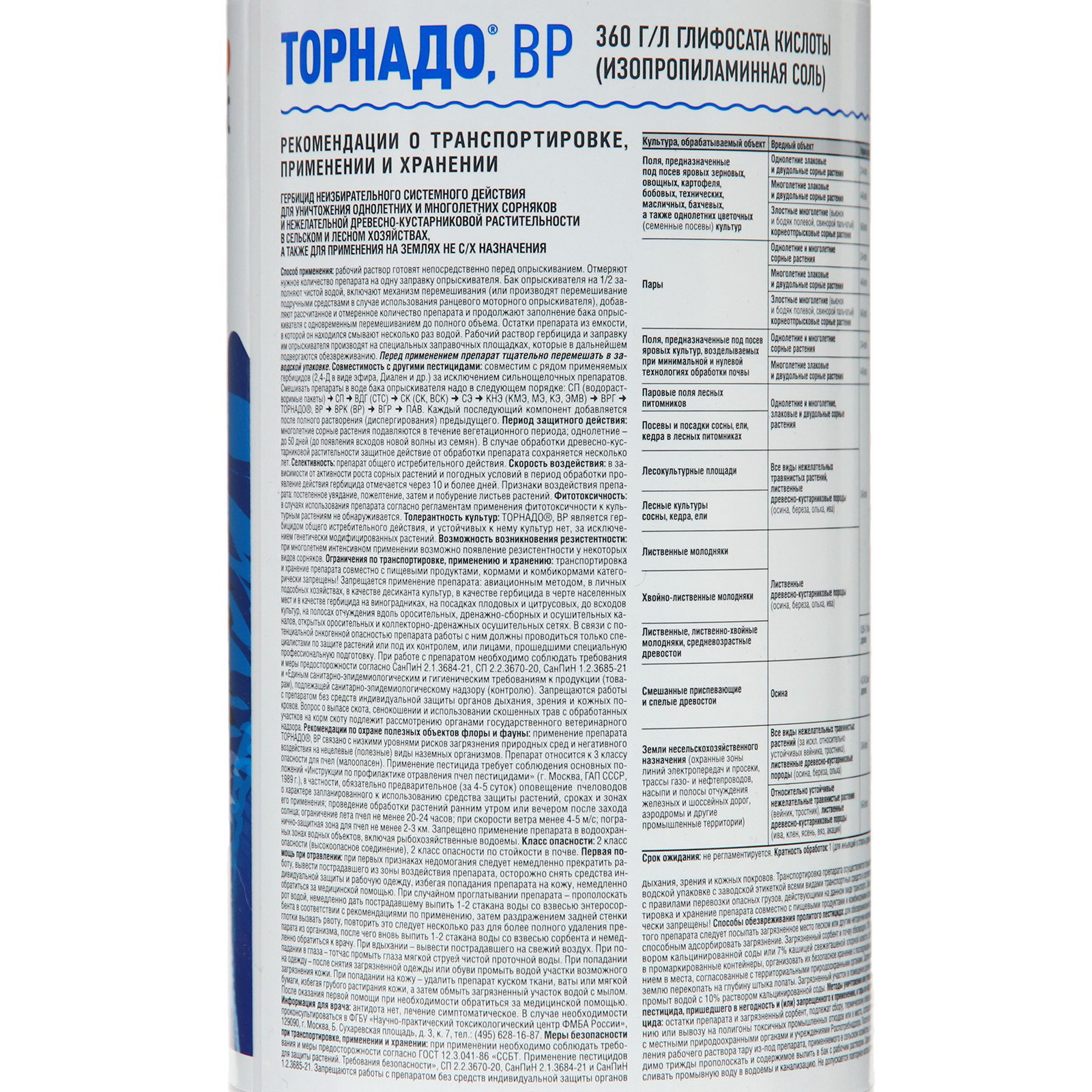 Размер упаковки: 8 x 5 x 25.2 см. Вес/Объём: 1 л tnved: 3808590000 Сатурн: Да Температурное ограничение: Нет Область применения: Для сплошного уничтожения Универсальное средство с повышенной концентрацией действующего вещества от всех видов сорняков. Уничтожает трудноистребимые сорняки, в том числе борщевик Сосновского. Вызывает полную гибель растений и их корневой системы. Высокая эффективность против кустарников. Эффективно уничтожает все виды нежелательной растительности. Мощный эффект, отличный результат.Торнадо является очень эффективным средством для борьбы с сорной растительностью. Он относится к категории гербицидов сплошного действия, эффективно избавляя дачные участки, виноградники и сады от однолетних и многолетних сорных растений. Это универсальный уничтожитель, который проникает в сорняки через листья и стебли, после чего проникая в их корневую систему, в результате растение полностью гибнет. | ||