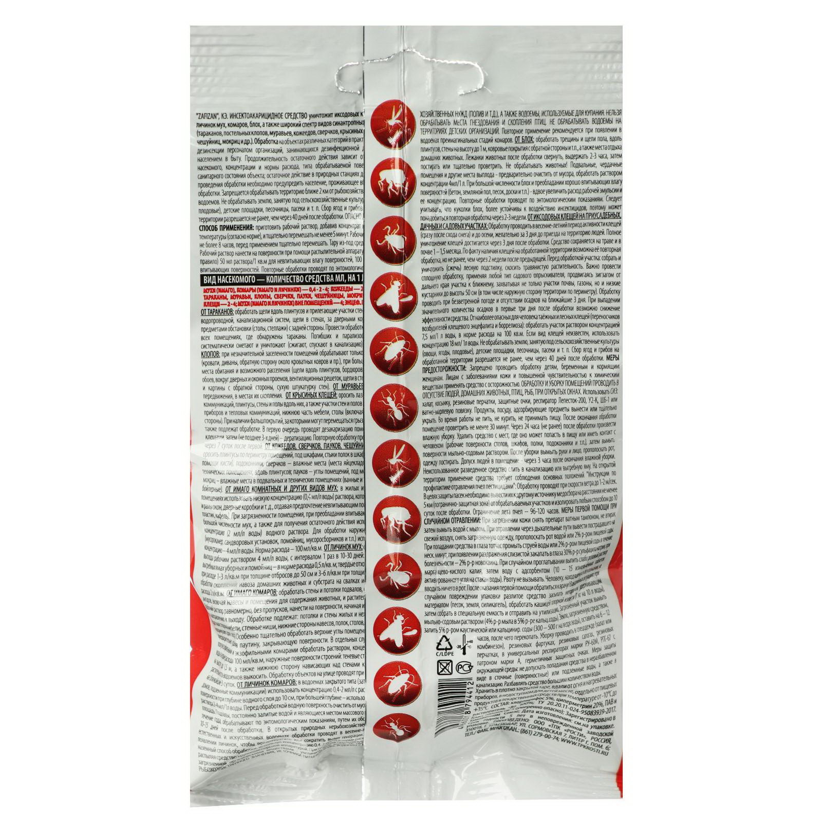 Размер упаковки: 10 x 2 x 17 см. tnved: 3808919000 Вид средства: Уничтожитель Форма средства: Жидкость Область применения: Универсальное Температурное ограничение: Нет Назначение: для уничтожения нелетающих членистоногих (тараканы, постельные клопы, муравьи, кожееды, сверчки, крысиные клещи, пауки, чешуйницы, мокрицы и др.) на объектах различной категории: в жилых, нежилых, производственных, хозяйственных и подвальных помещениях; на объектах коммунально-бытового назначения (гостиницы, общежития, спорткомплексы); на предприятиях пищевой промышленности, общественного питания, магазинах ( в санитарные дни); в детских (кроме спален и игровых комнат) и медицинских (кроме палат стационаров) организациях в отсутствие взрослых и детей; на объектах железнодорожного транспорта и метрополитена. Состав: циперметрин 20%, хлорпирифос 5%, вспомогательные вещества и растворитель до 100%. Описание: концентрат эмульсии (прозрачная подвижная жидкость светло-коричневого цвета). Область применения: персоналом организаций, занимающихся дезинфекционной деятельностью. | ||