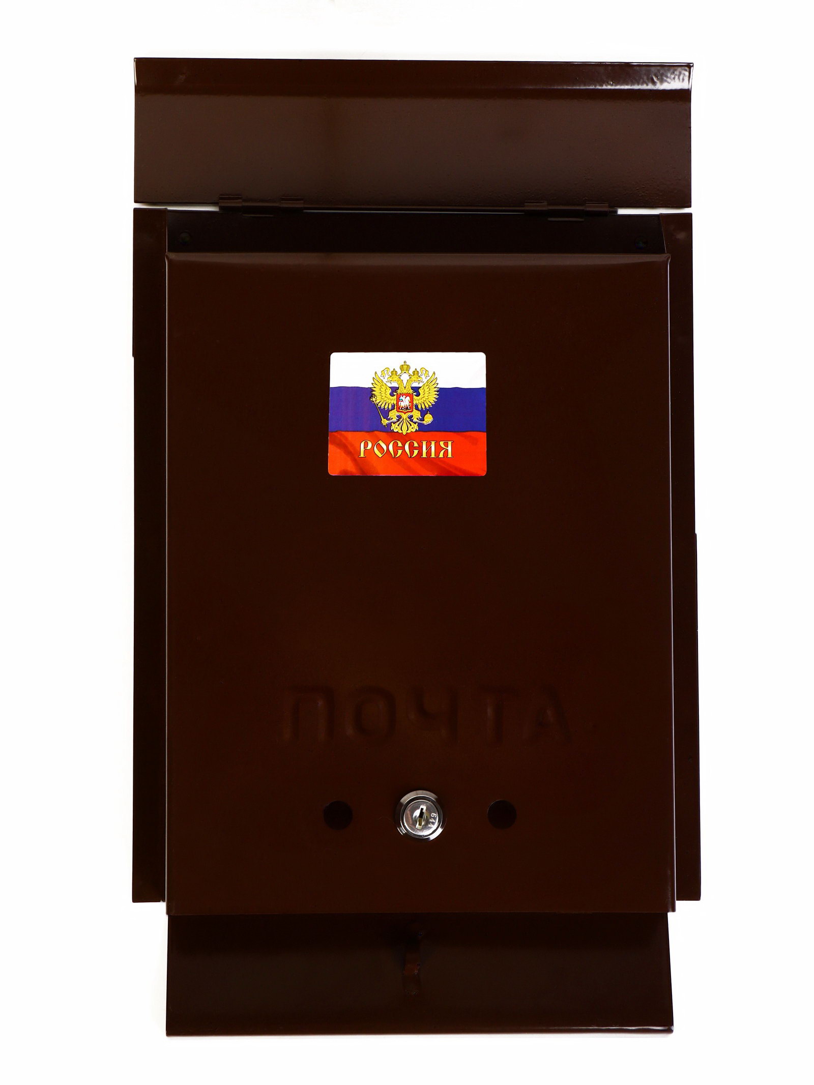 Ящик почтовый с замком, вертикальный, "Почта", коричневый, Россия