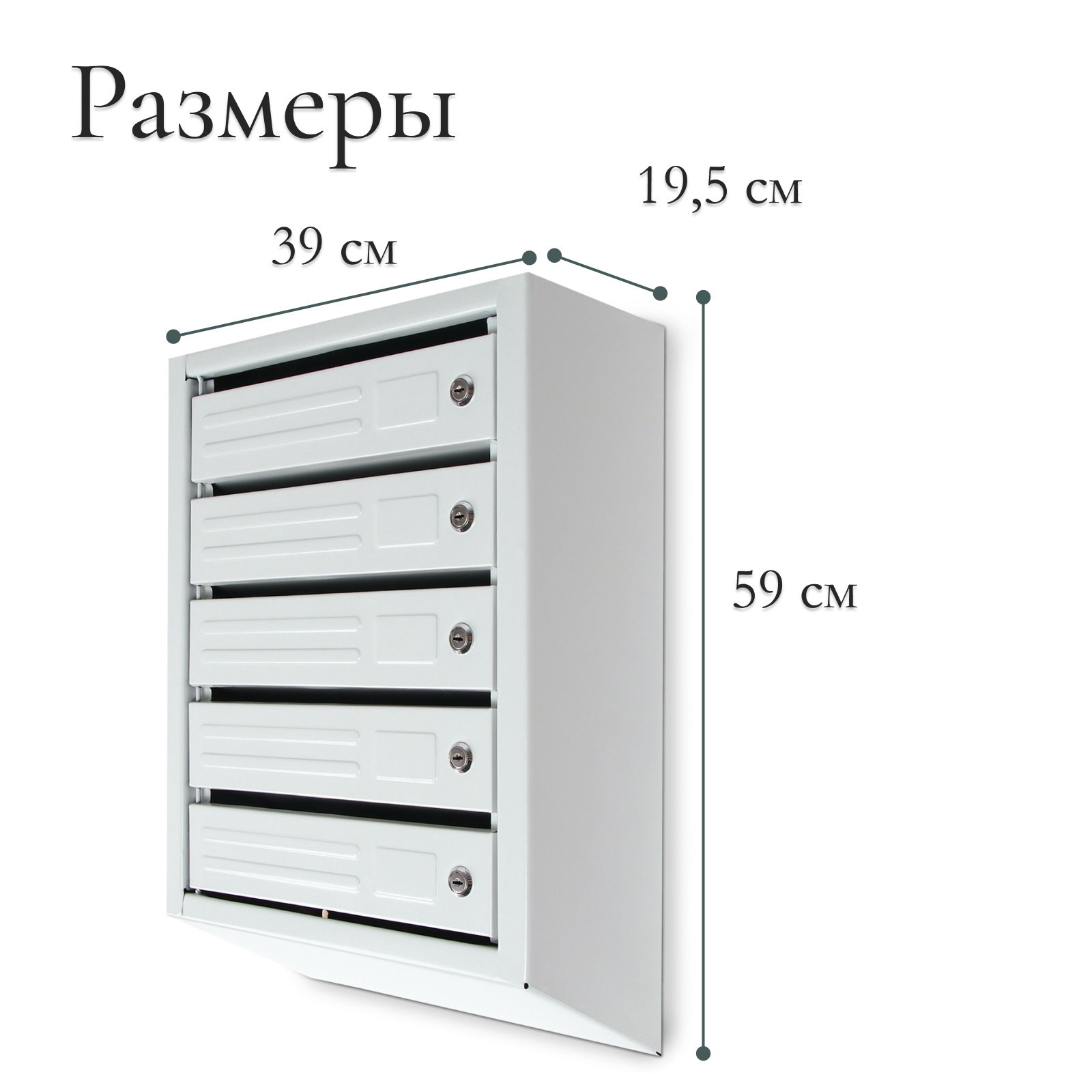 Размер упаковки: 39 x 19.5 x 59 см. Положение: Вертикальное Тип замка: Замок Цвет: Серый tnved: 7326199000 Количество секций: 5 Почтовый ящик предназначен для временного хранения корреспонденции и нужен в каждом доме. Характеристики