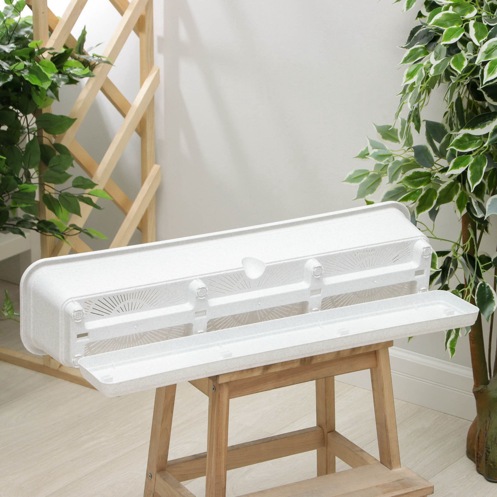 Лёгкость в уходе: пластик с гладкой поверхностью не задерживает загрязнения. Достаточно протереть его влажной тканью для поддержания чистоты и блеска. Установите ящик, добавьте грунт и наслаждайтесь зеленью, преображающей ваш балкон в считанные часы. Это перевоплощение требует минимальных усилий, обеспечивая максимальный эффект. | ||