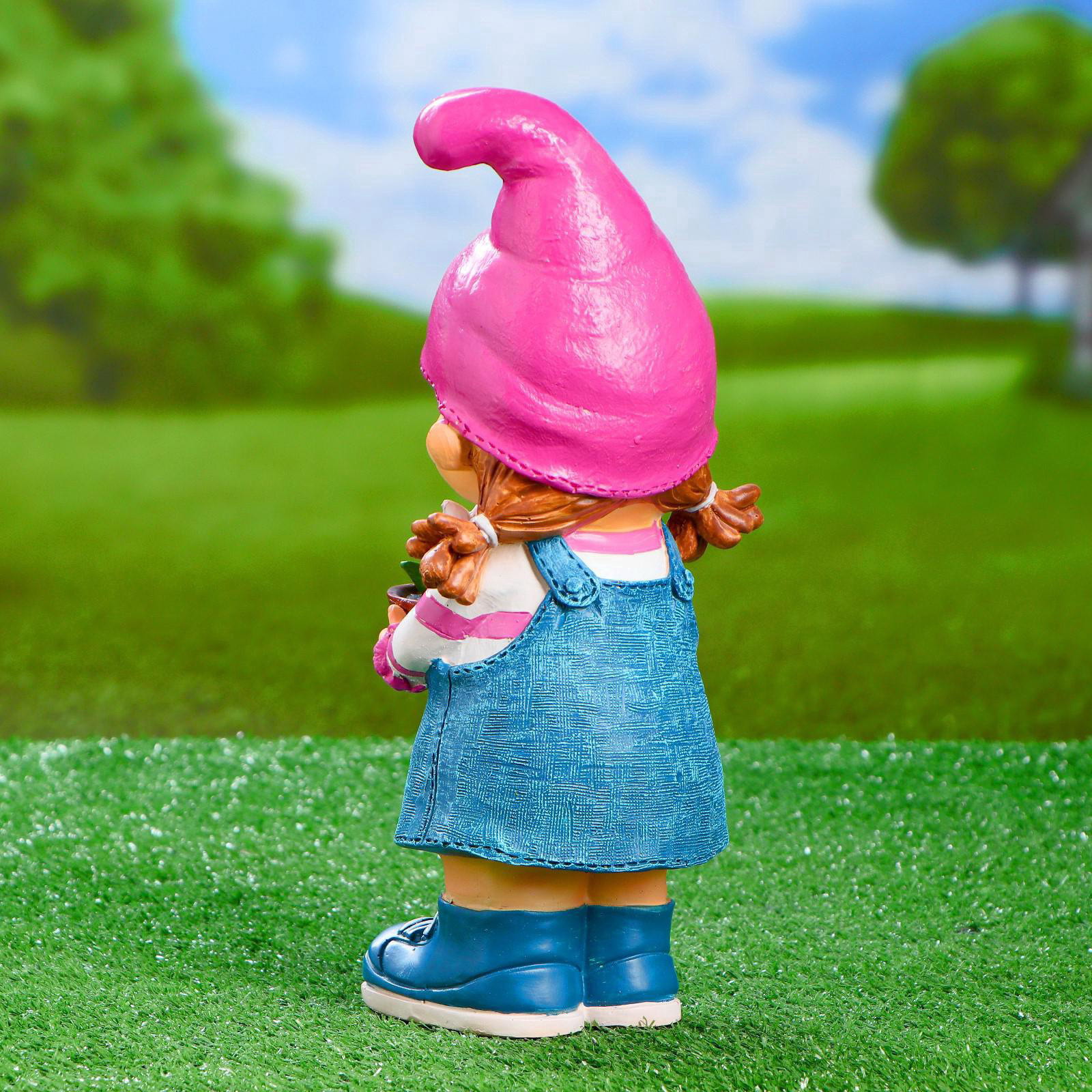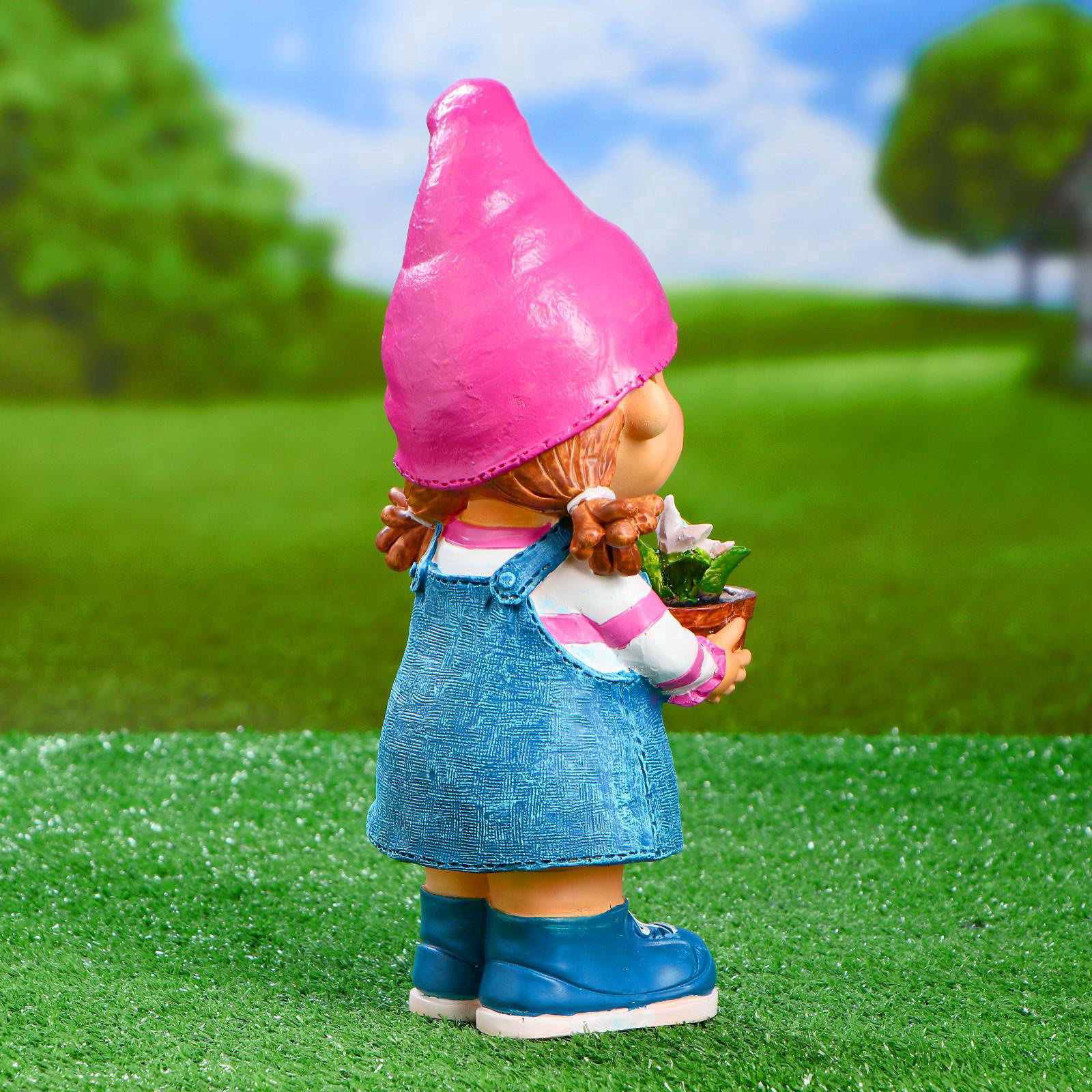 Садовая фигура из полистоуна "Девочка-гном с цветочком", 32x15x13 см, Хорошие сувениры, Россия