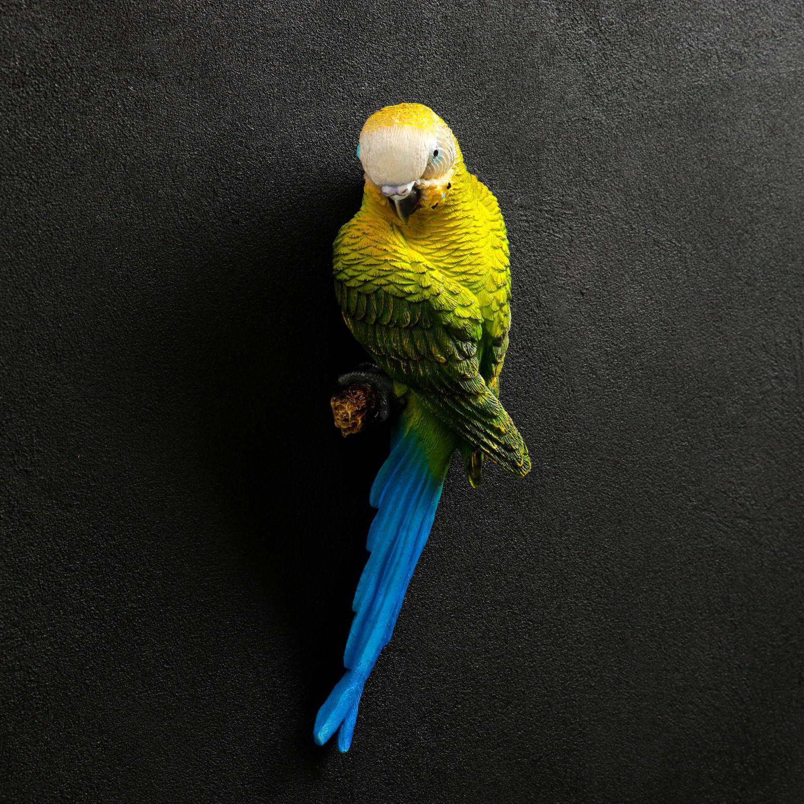 Садовая фигура из полистоуна "Попугай волнистый на ветке", подвесная, 7x12x29 см, Хорошие сувениры, Россия