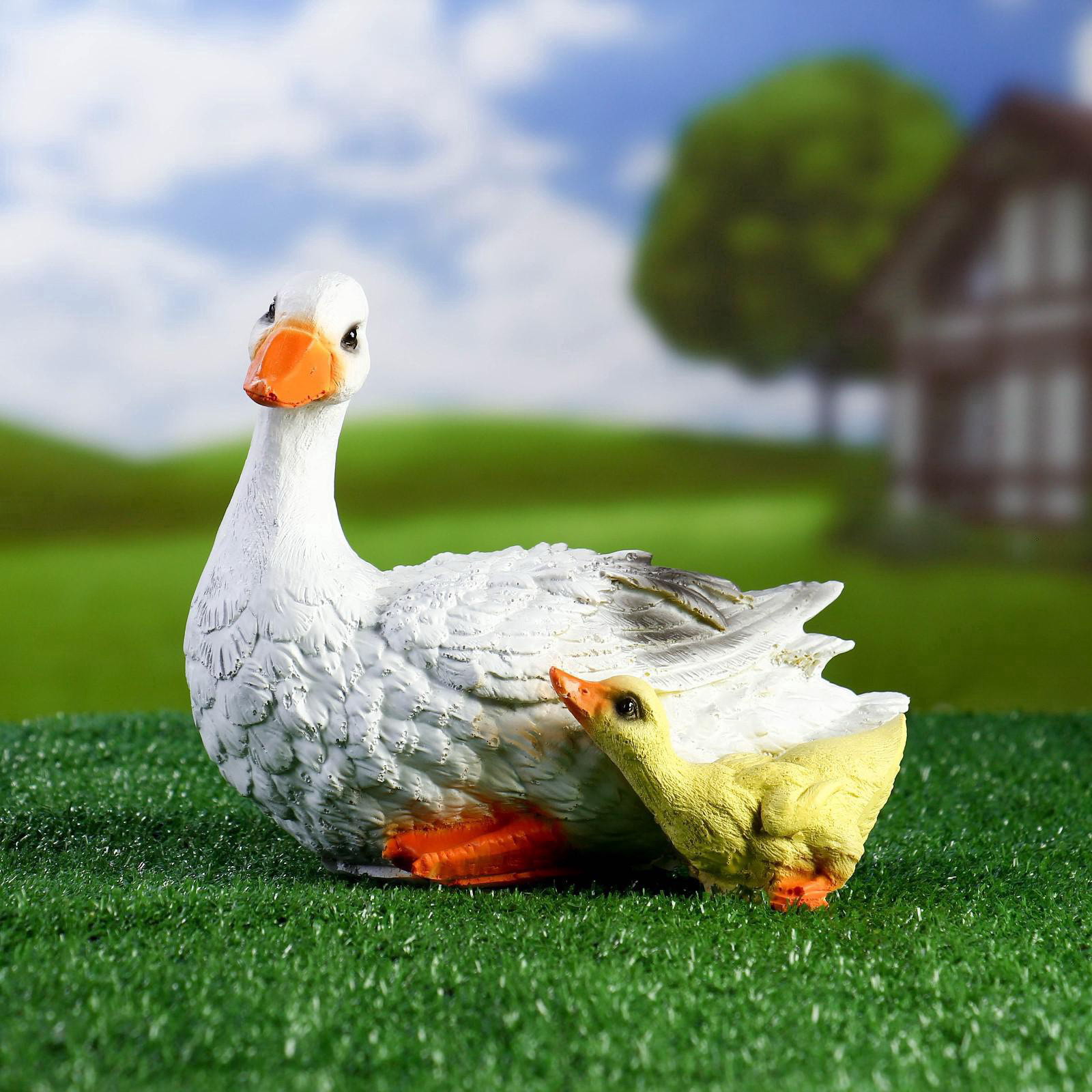 Садовая фигура из полистоуна "Утка с утёнком", 20x15x23 см, 18x15x20 см., Хорошие сувениры, Россия