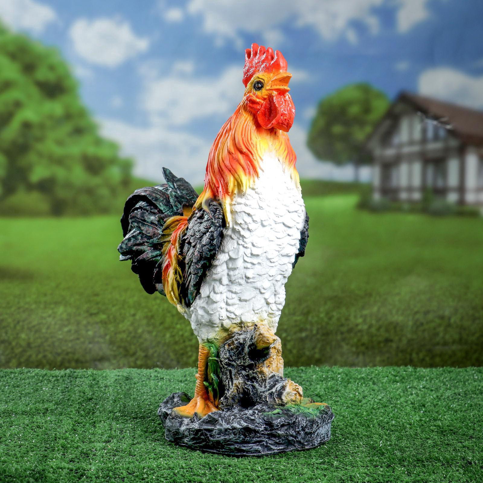 Садовая фигура из полистоуна "Петух на камне", 42x32x13 см, 13x32x42 см., Хорошие сувениры, Россия