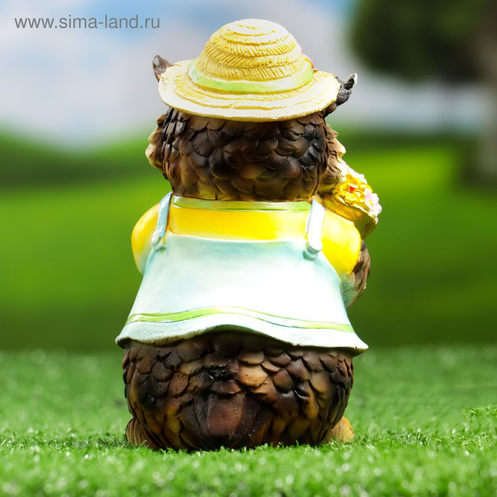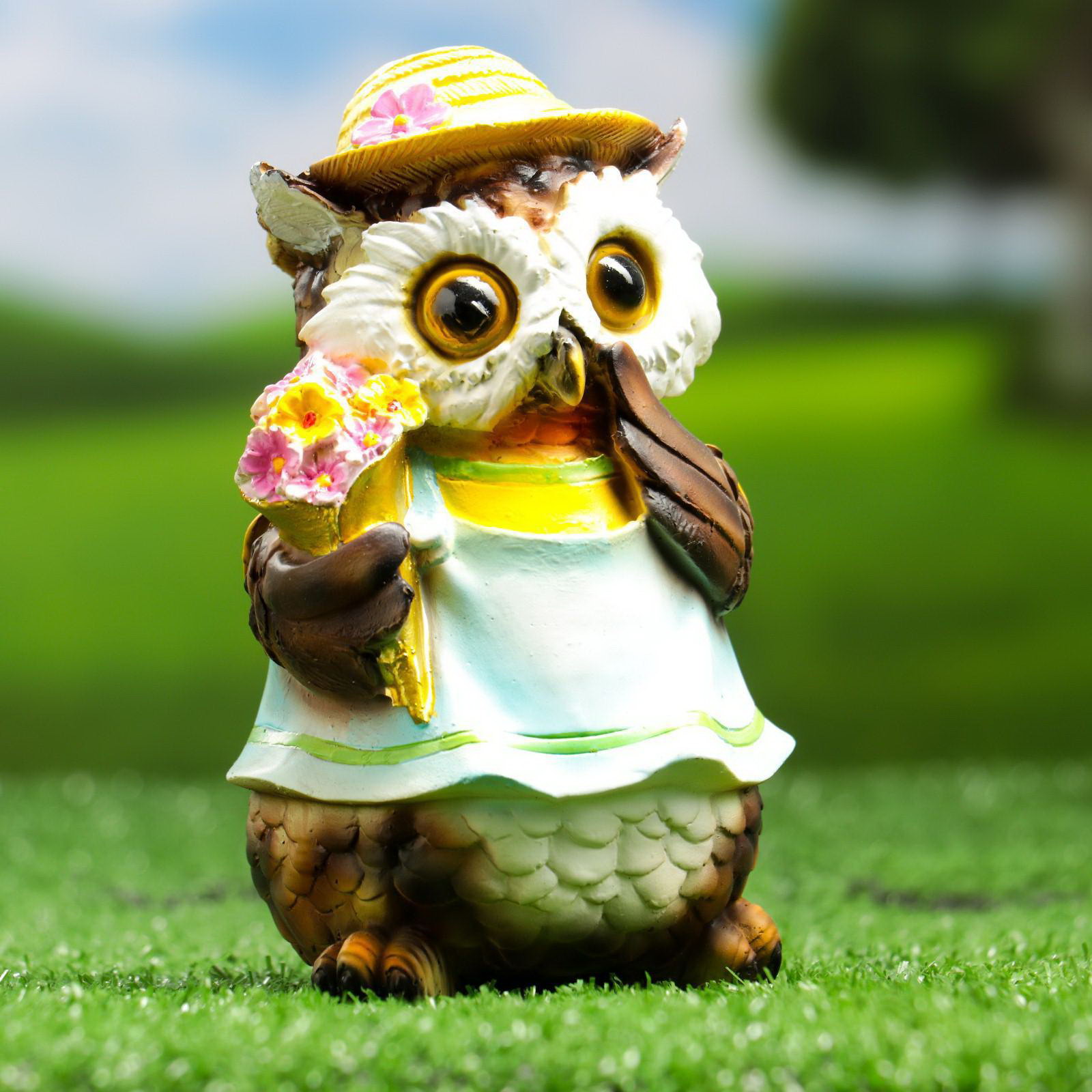 Садовая фигура из полистоуна "Филин в шляпке с букетом", 10x9.5x15 см, Хорошие сувениры, Россия