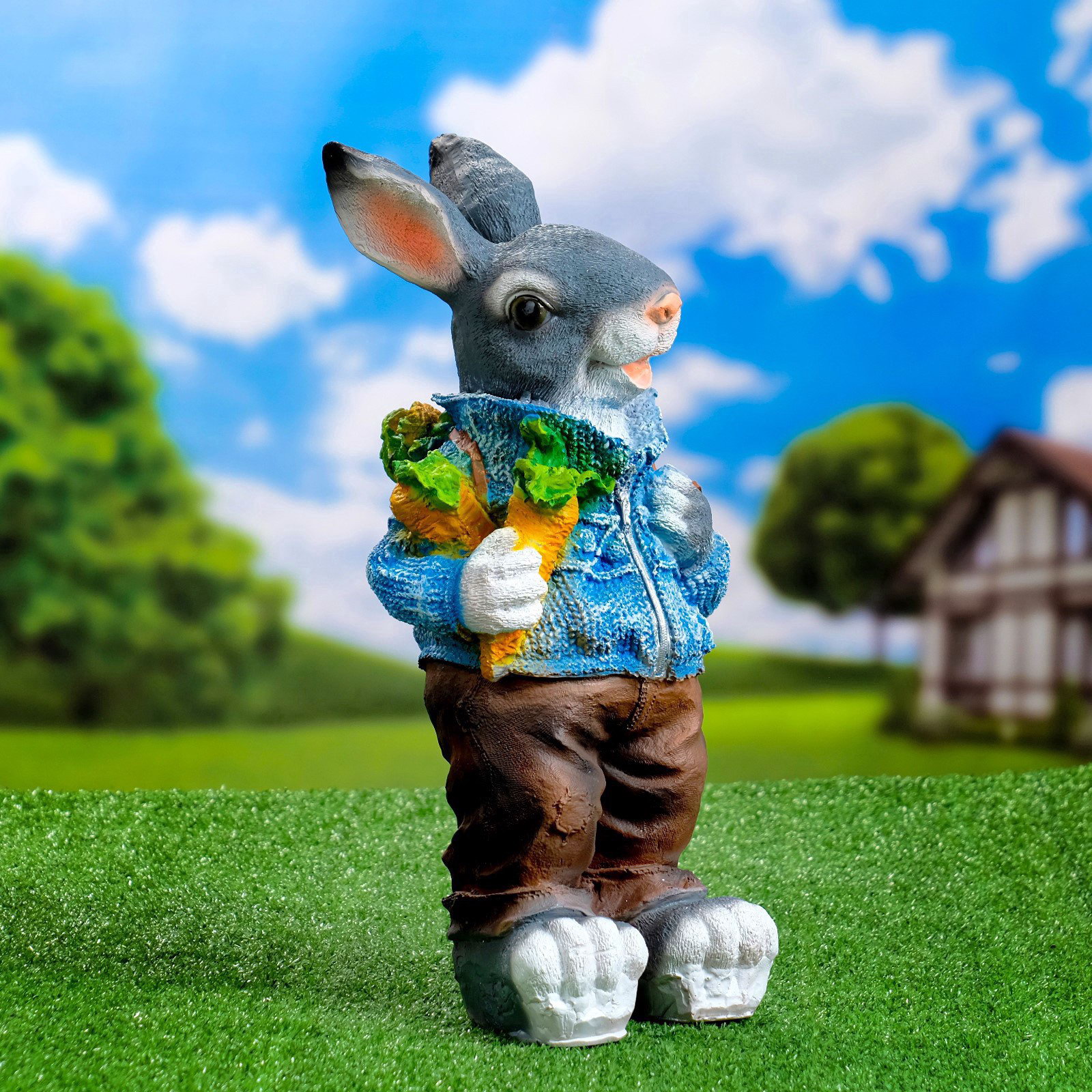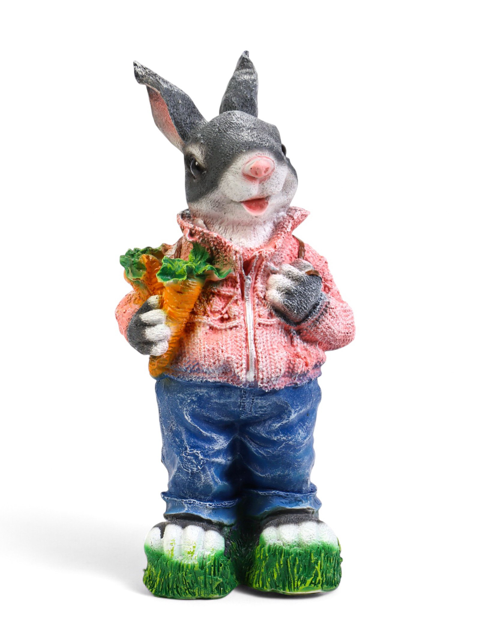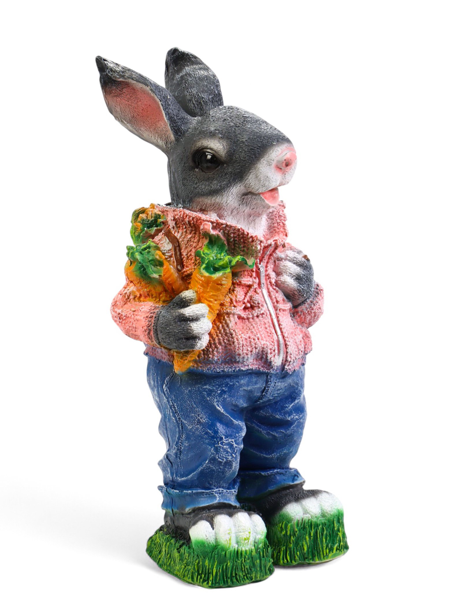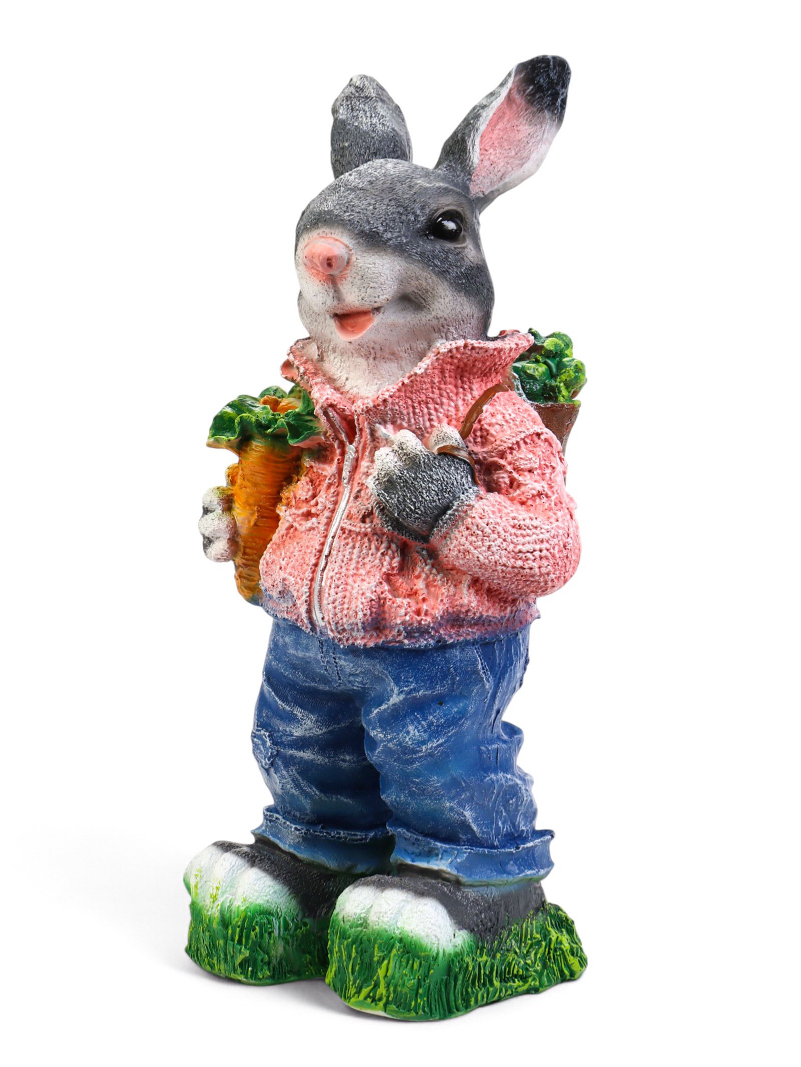 Садовая фигура из полистоуна "Зайка с морковкой и рюкзаком", 40x14x18 см, Хорошие сувениры, Россия