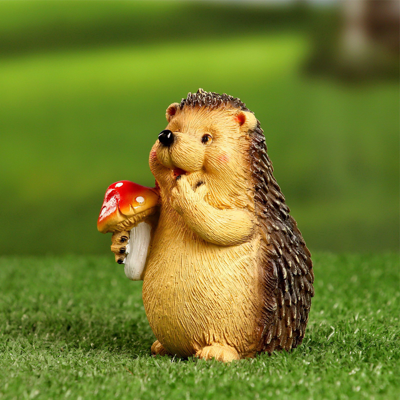 Садовая фигура из полистоуна "Ежик с мухомором", 11x8x9 см, Хорошие сувениры, Россия
