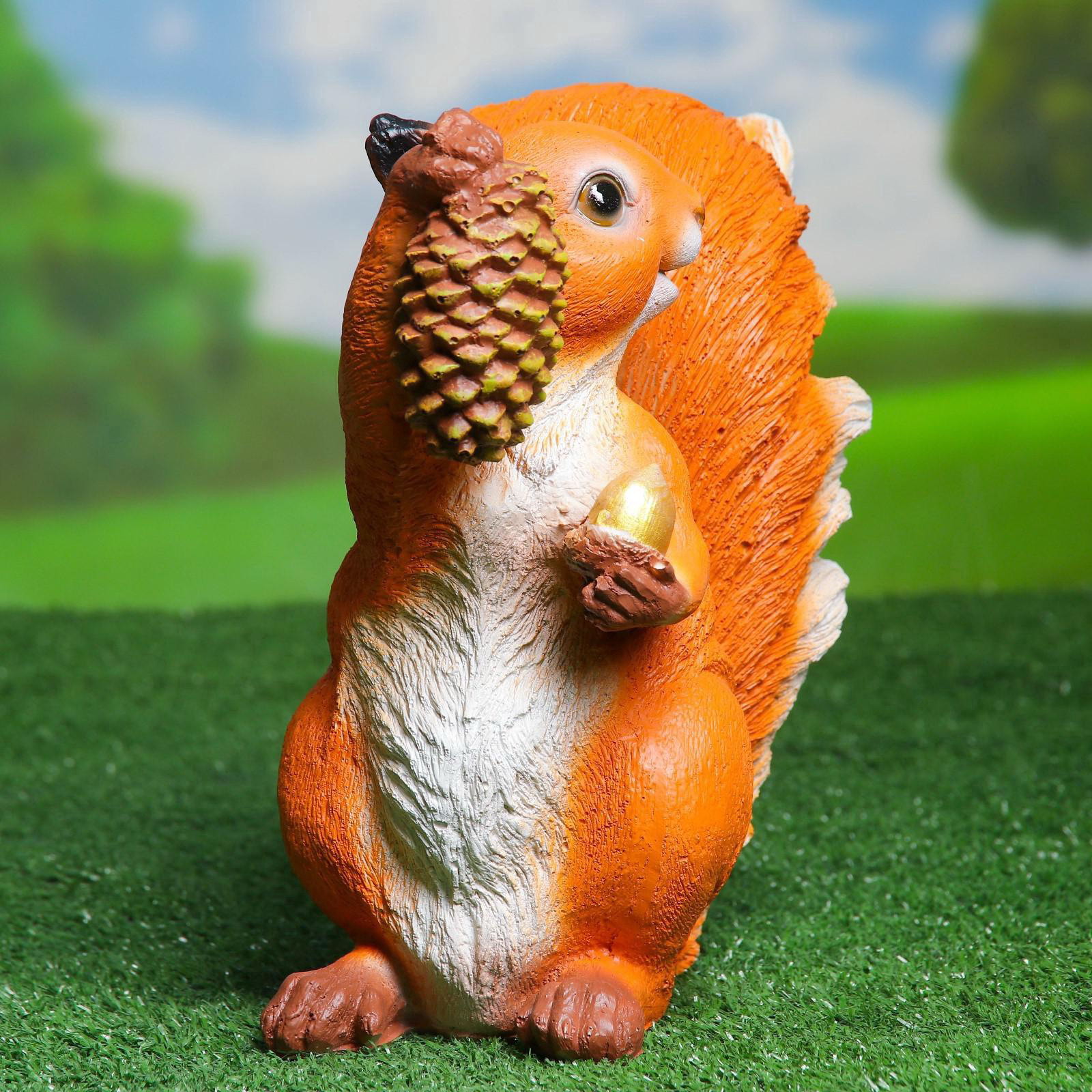 Садовая фигура из полистоуна "Белка с шишкой", 28x12x27 см, 27x12x28 см., Хорошие сувениры, Россия