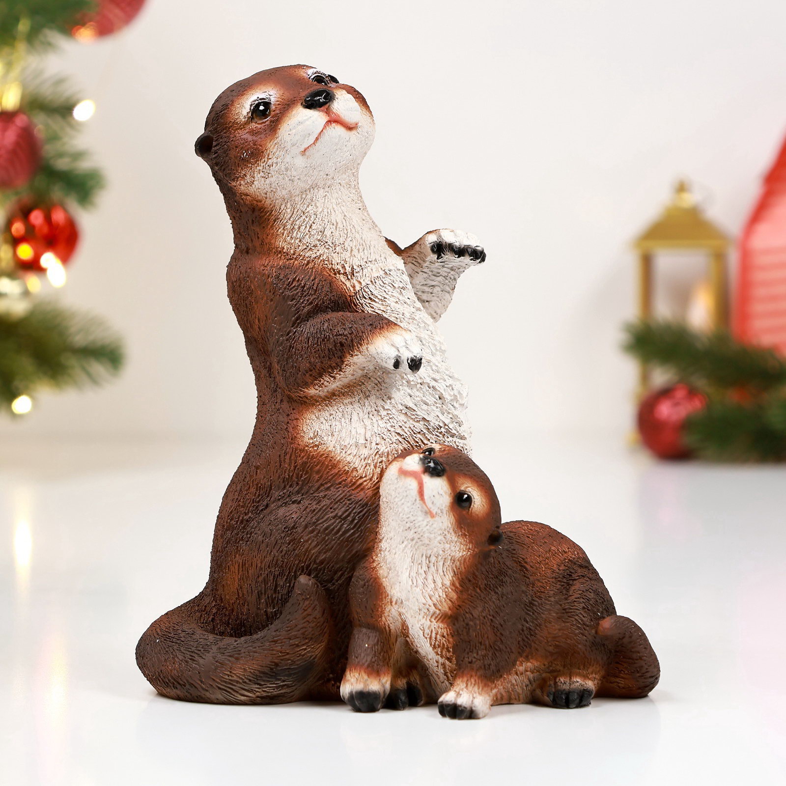Садовая фигура из полистоуна "Выдра с малышом", 20x12x17 см, Хорошие сувениры, Россия