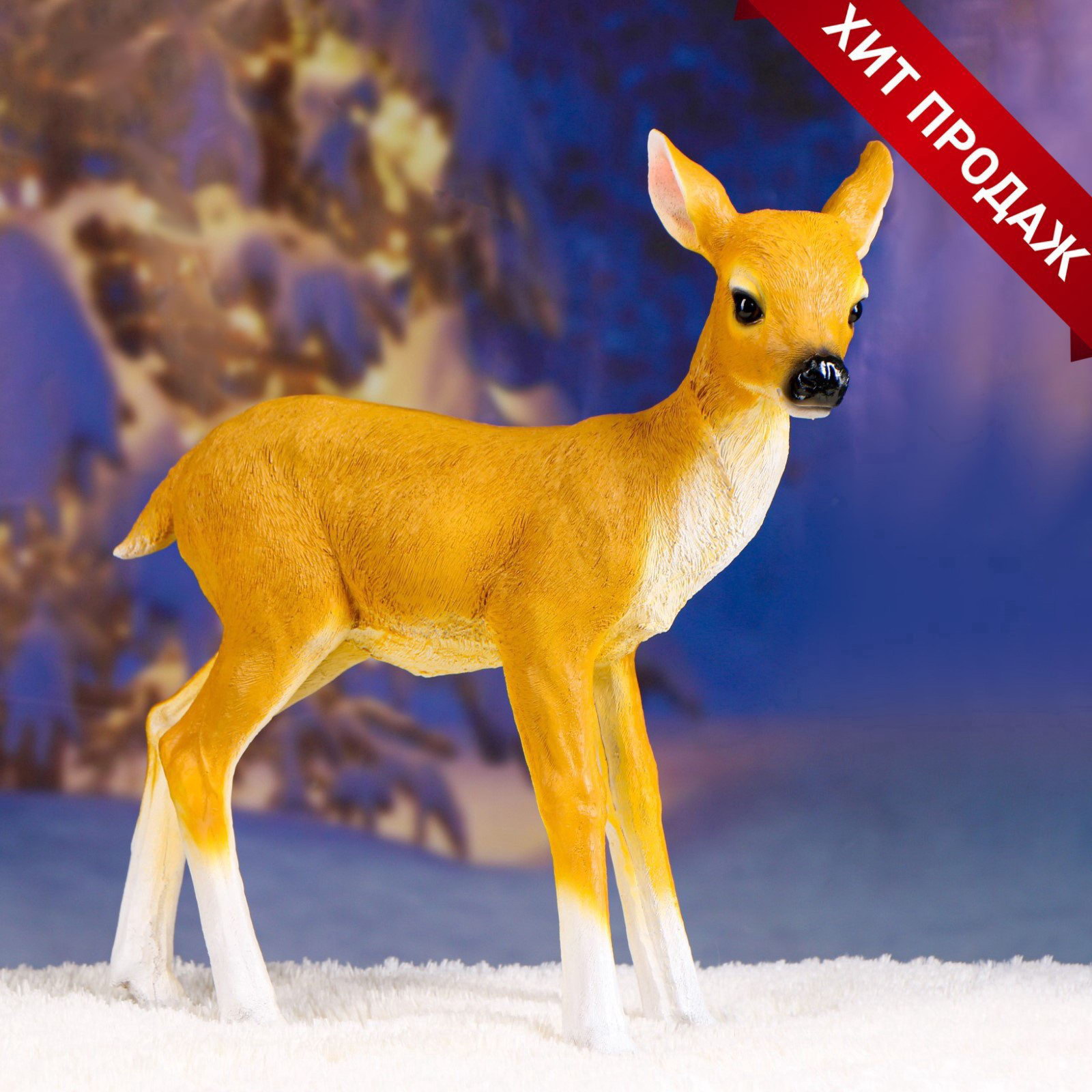 Садовая фигура из полистоуна "Оленёнок", 46x41x10 см, 41x48 см., Хорошие сувениры, Россия