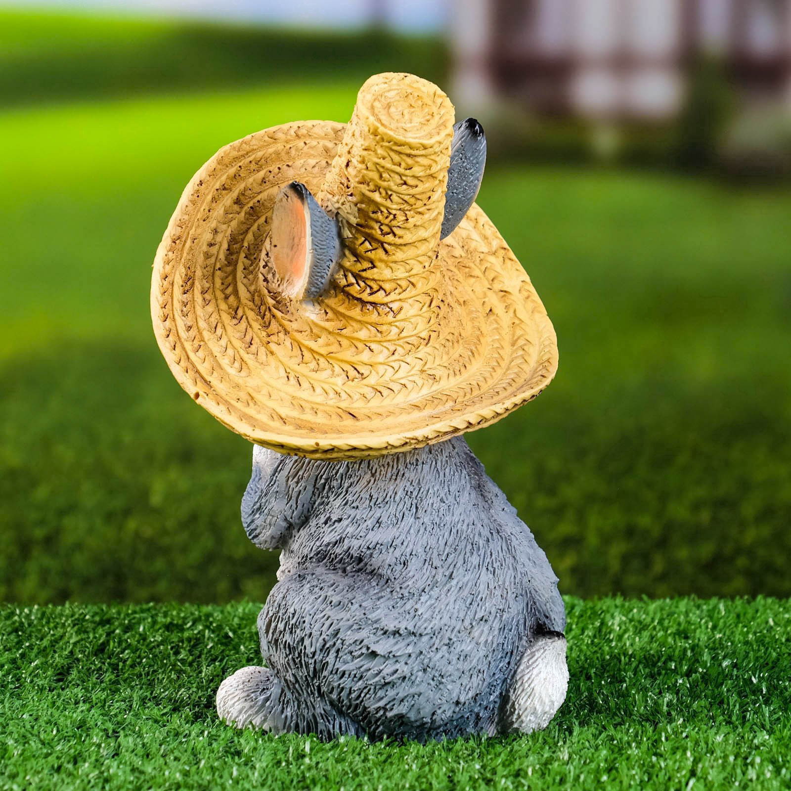 Садовая фигура из полистоуна "Зайка в соломенной шляпе с бабочкой", 19x12x14 см, Хорошие сувениры, Россия