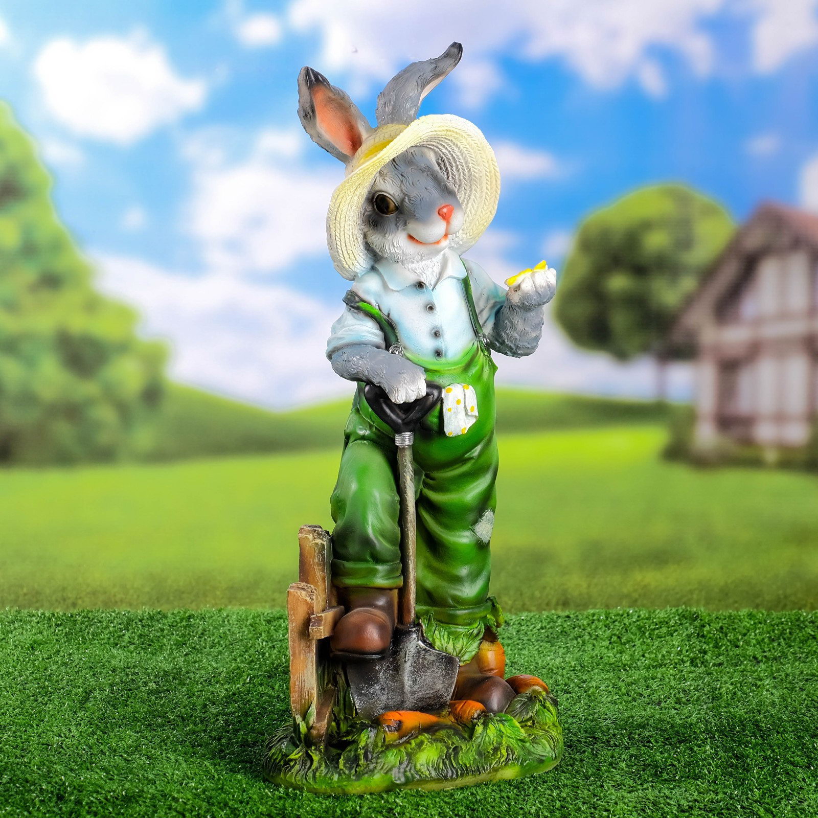 Садовая фигура из полистоуна "Заяц - фермер", 24x20x52.5 см, Хорошие сувениры, Россия